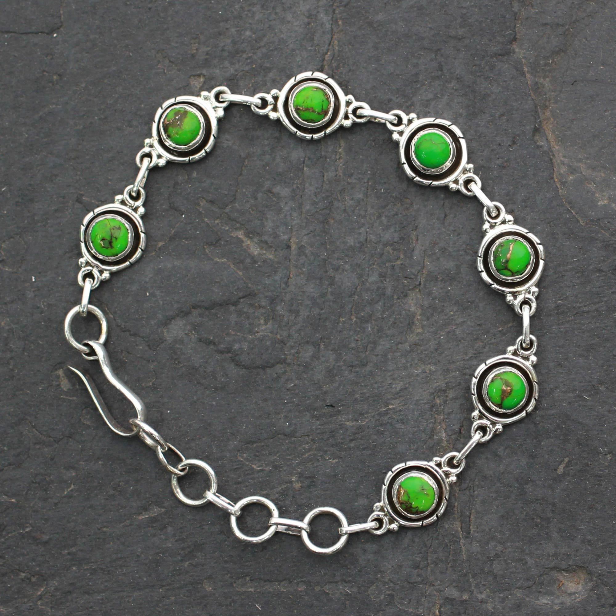 Sterling Silver and Comp Turquoise Bracelet from India, 'Green with Beauty'