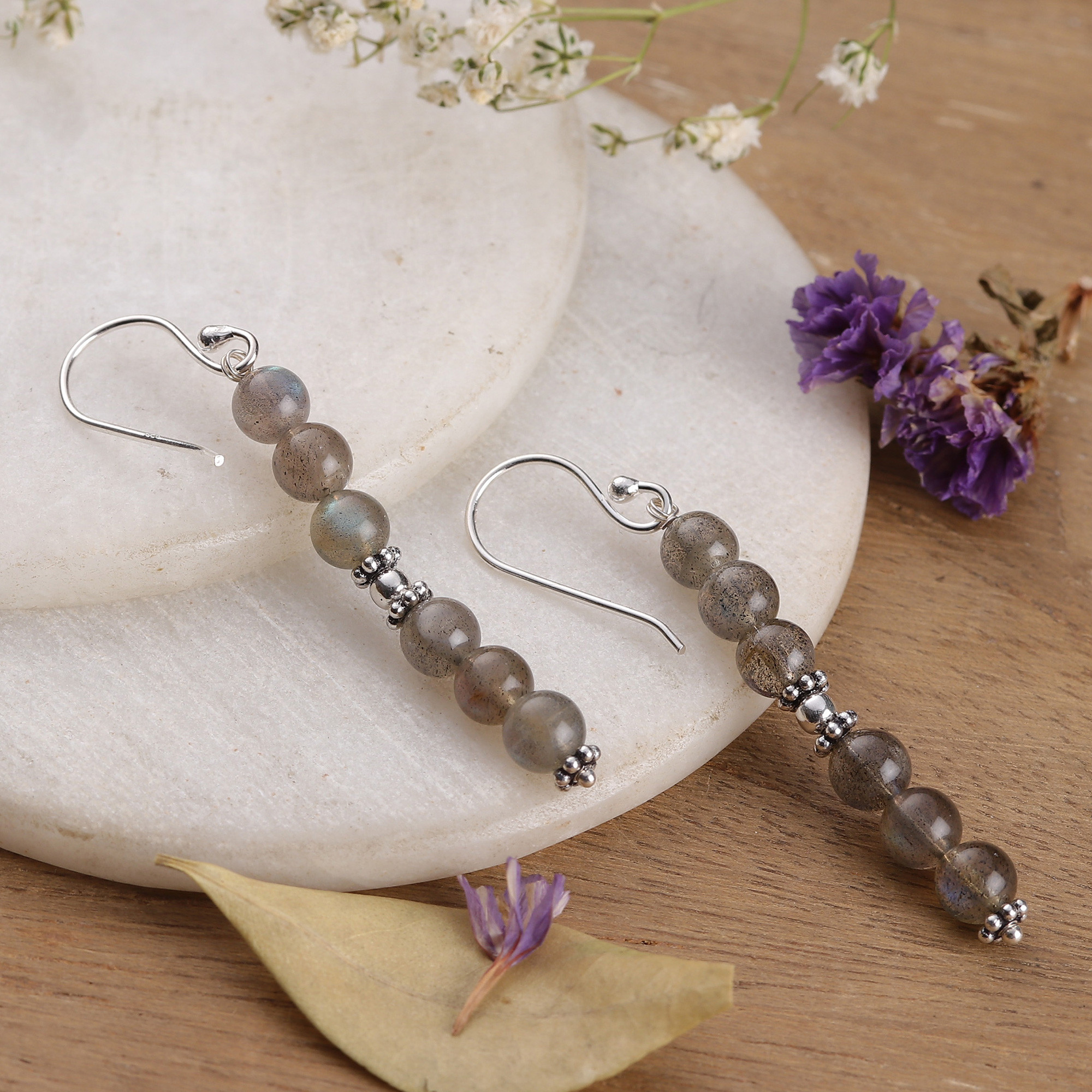 Sterling Silver and Labradorite Bead Dangle Earrings, 'Labradorite Pillars'