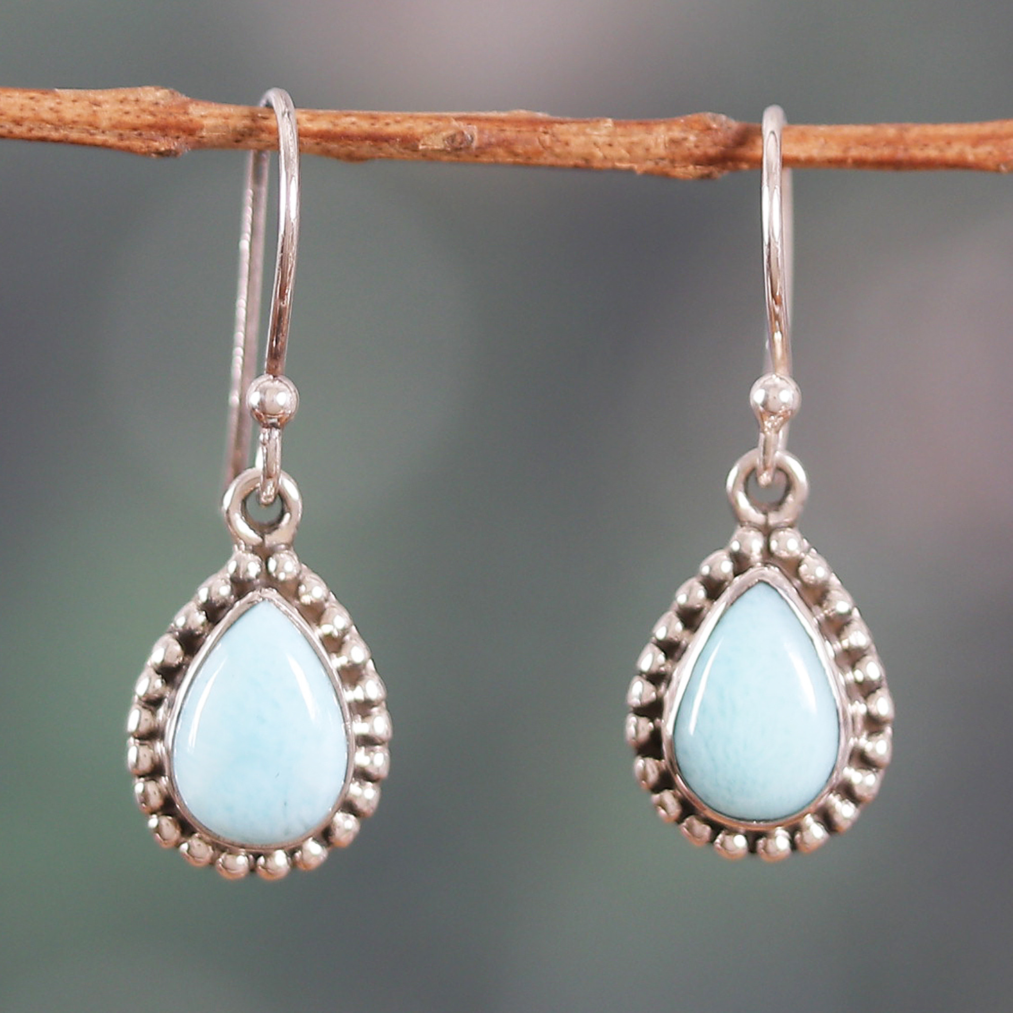 Sterling Silver and Larimar Drop Shaped Dangle Earrings, 'Sky Dewdrops'