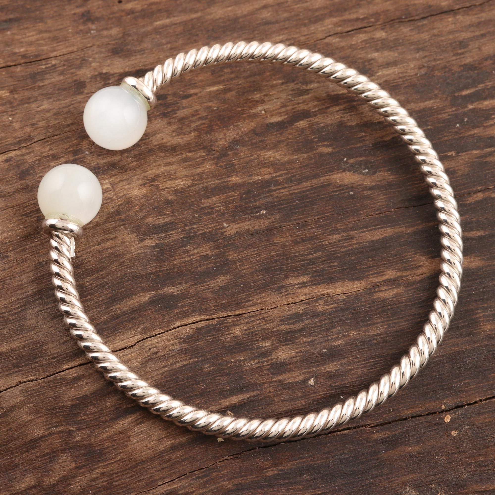 Sterling Silver and Moonstone Twist Cuff Bracelet, 'Lovely Luna in White'