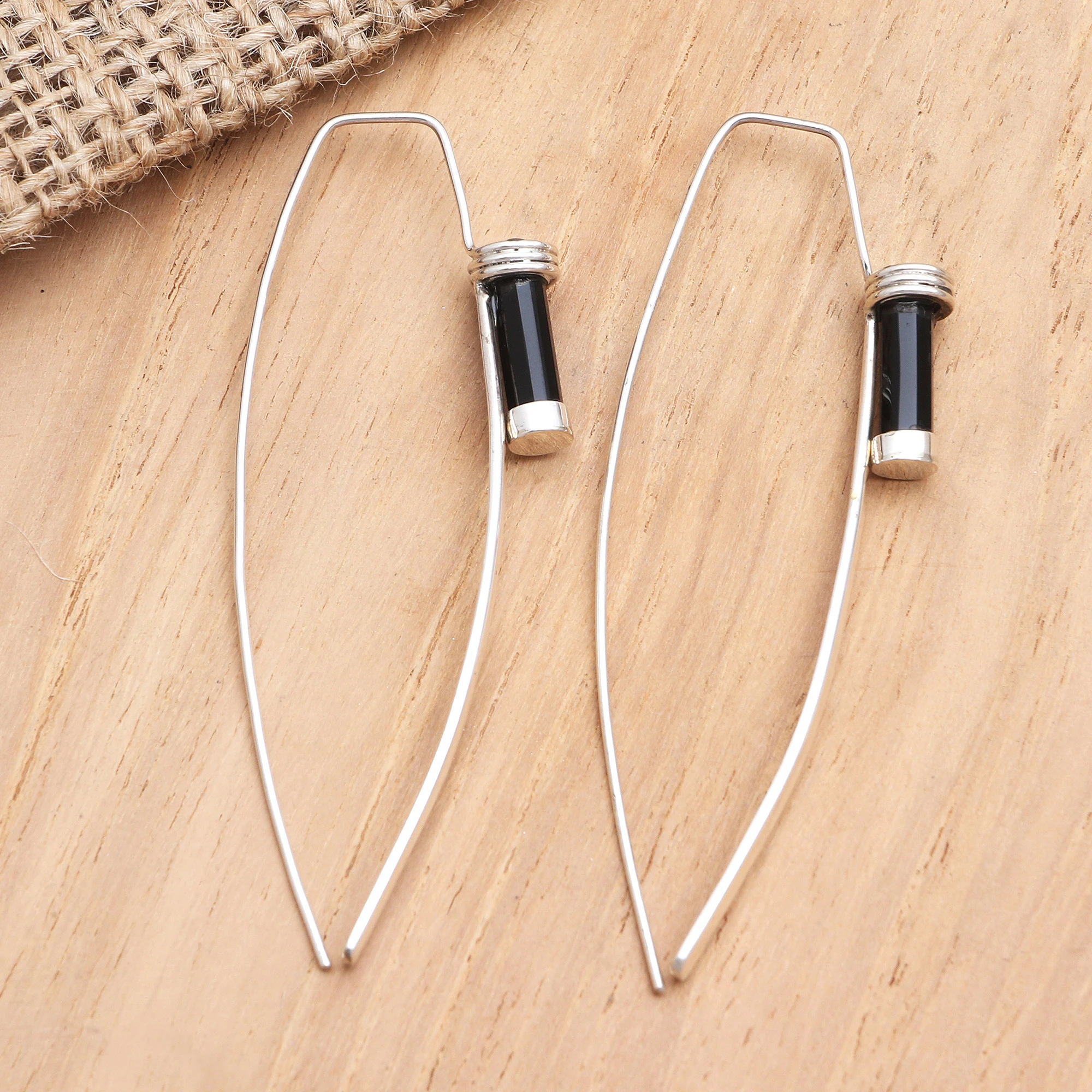 A beautiful black gem shines on Kadek Aridyah's impossibly cool, minimalist earrings. The Balinese artisan hand crafts the earrings from a delicate arc of sterling silver with a high polish finish, while a smooth onyx bead adds an intriguing detail.