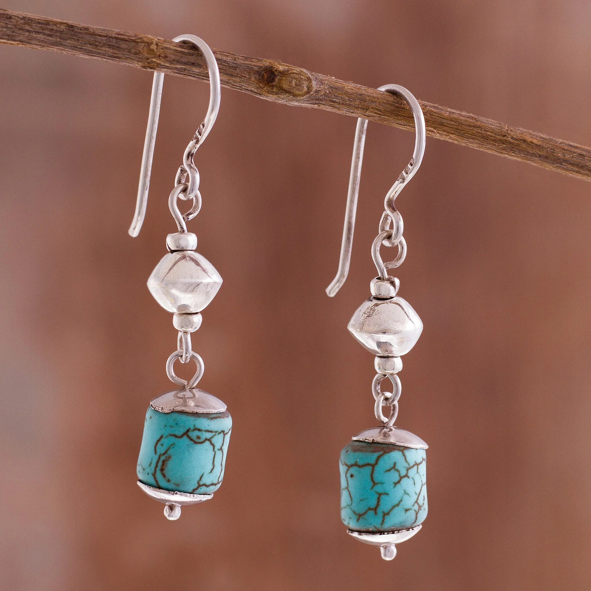 Sterling Silver and Recon. Turquoise Dangle Earrings, 'Brilliance of the Ocean'