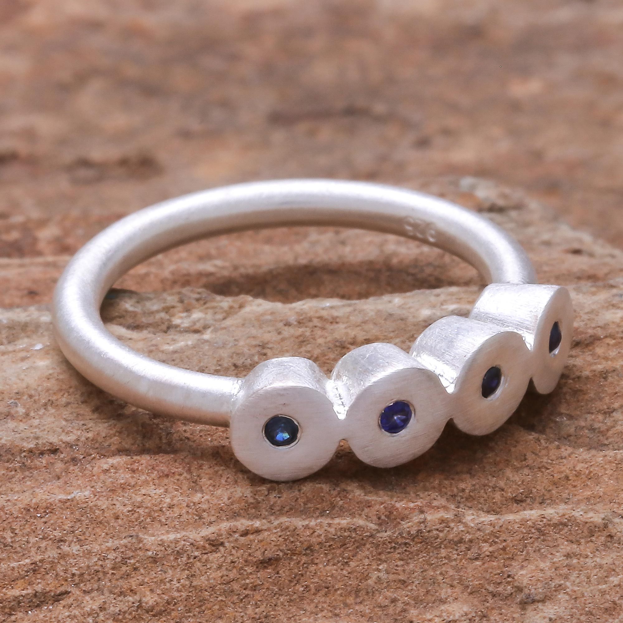 Sterling Silver and Sapphire Ring, 'Songkran Moons'