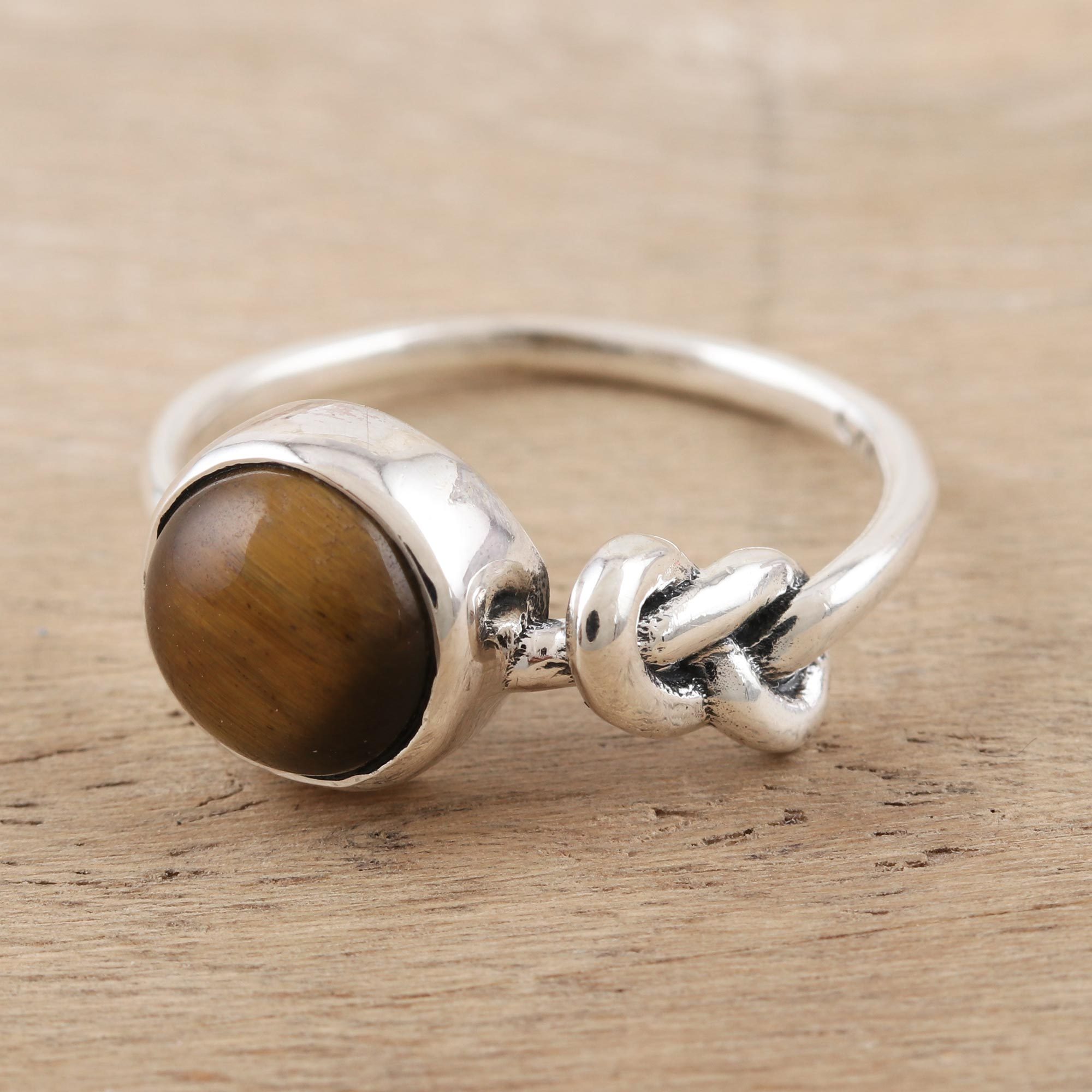 Sterling Silver and Tiger's Eye Cocktail Ring, 'Earthy Knot'