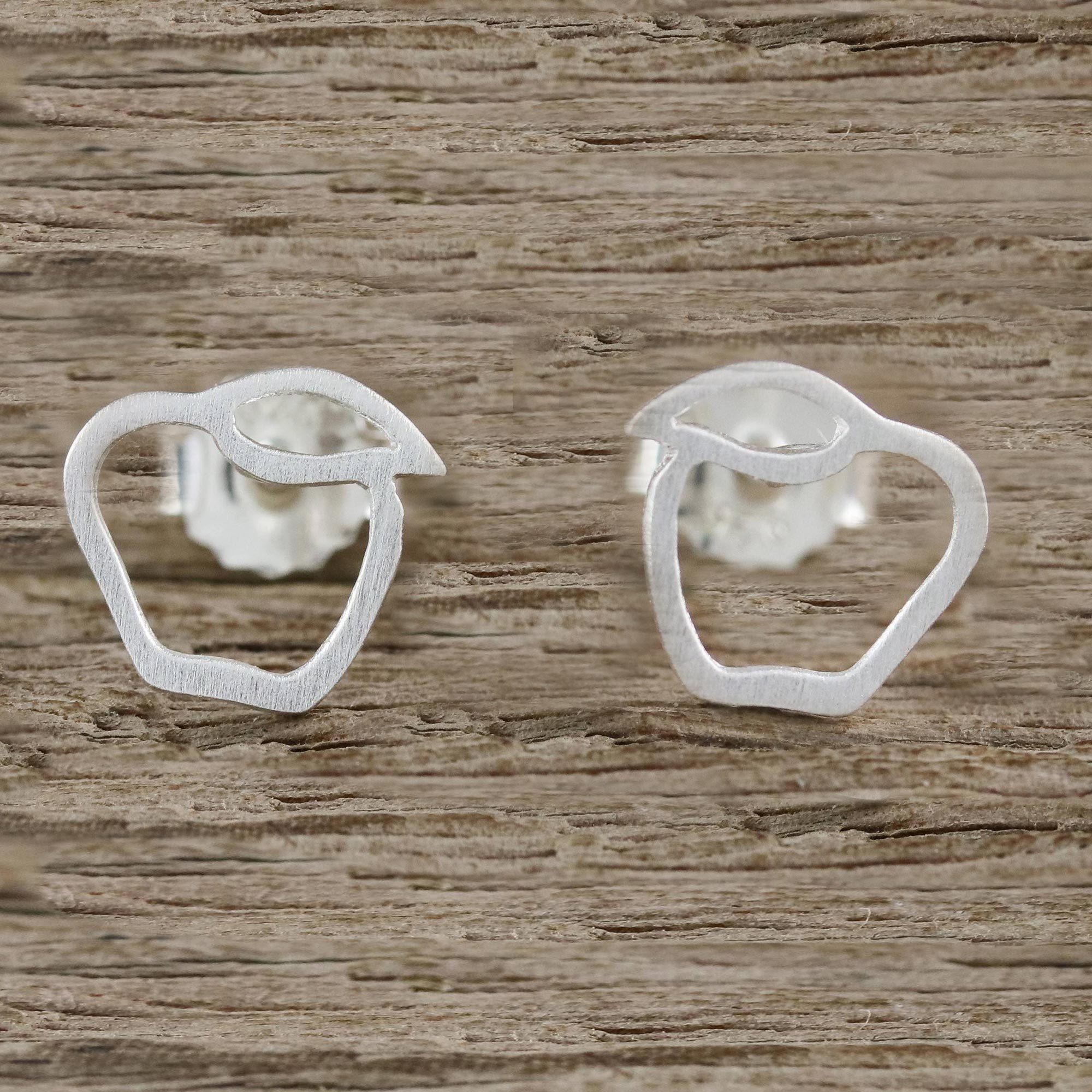 Crafted in sterling silver openwork, two crisp apples adorn the ears. Thailand's Sarote Lochotinunt designs and crafts this pair of stud earrings, given a brushed-satin finish.