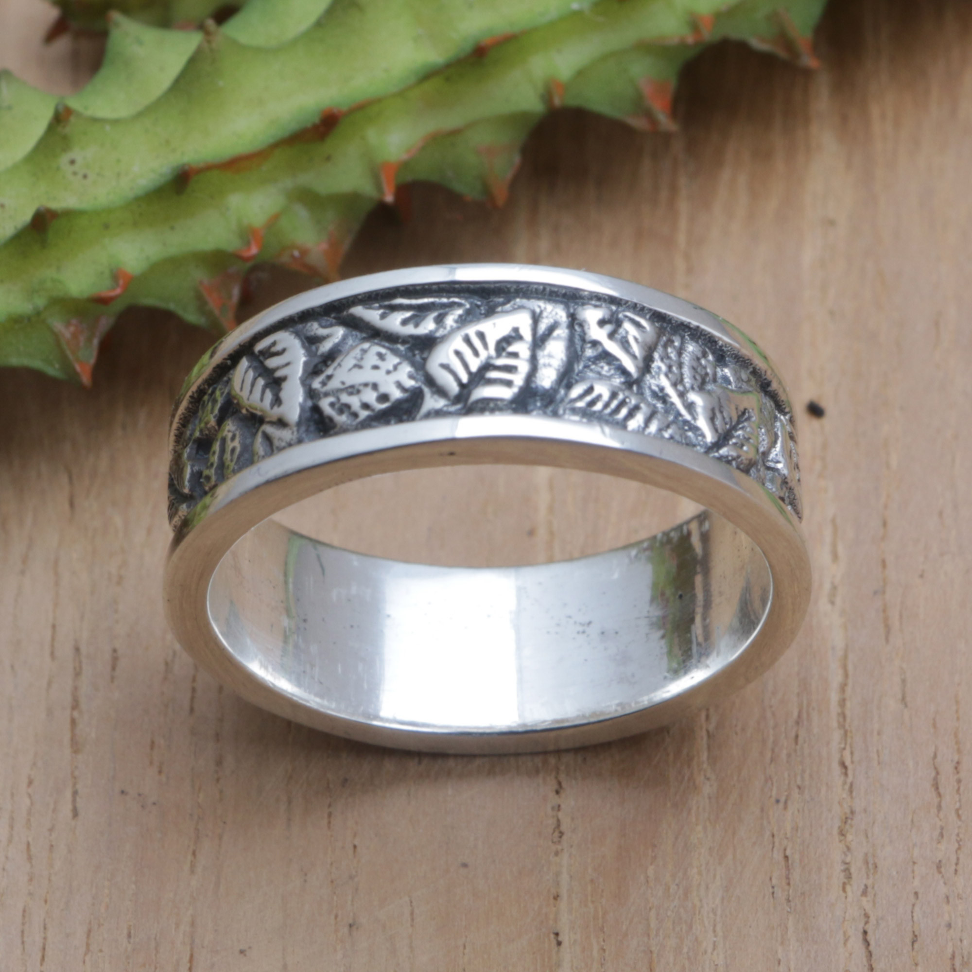 Sterling Silver Autumn Leaf Band Ring from Bali, 'Autumn Caresses'