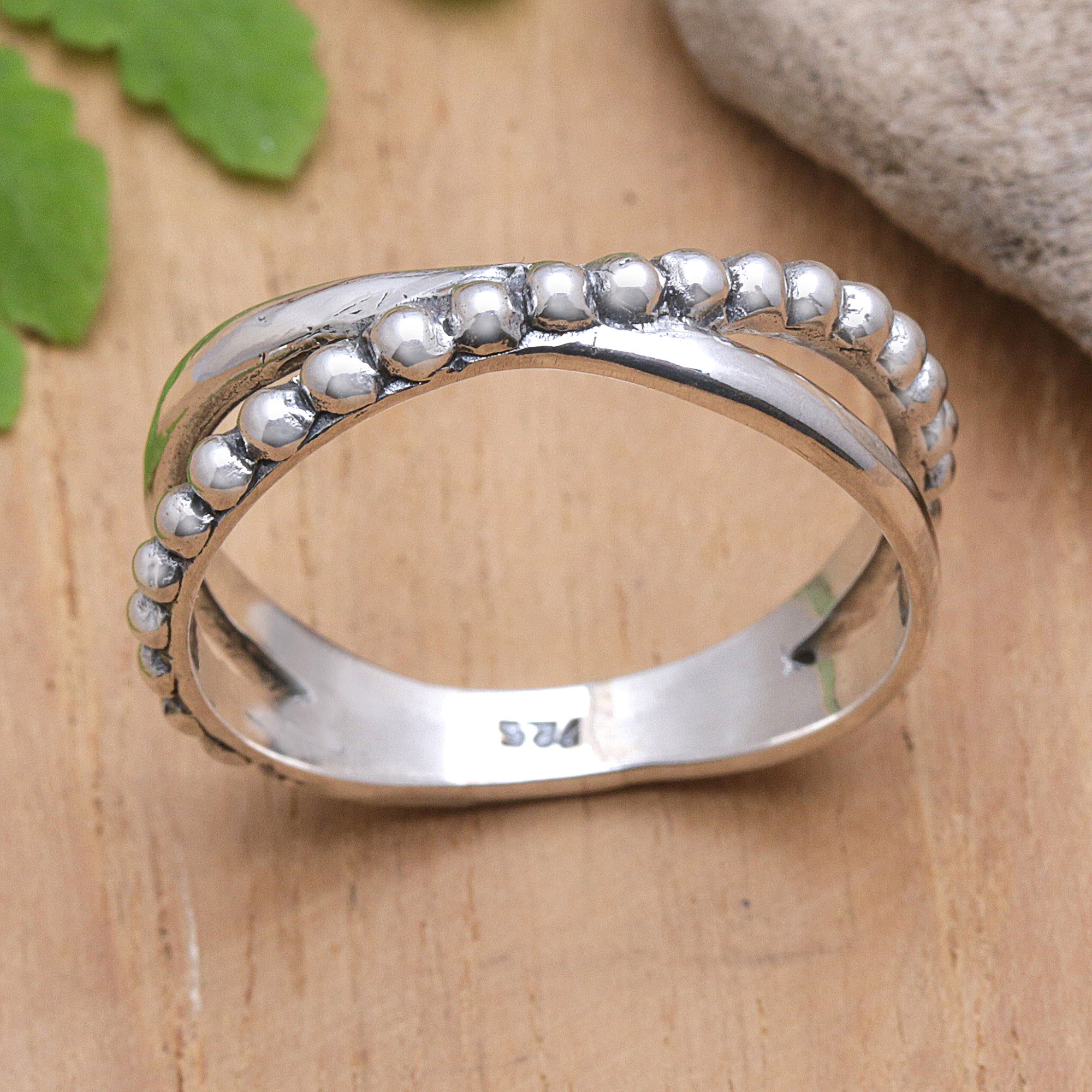 Polished hoops form a modern design with a mysterious aura, perfect for a bewitching look. Bali's Dewa Arimbawa works with sterling silver to create this band ring with a line of orbs crossing through the design, creating a magical vibe.