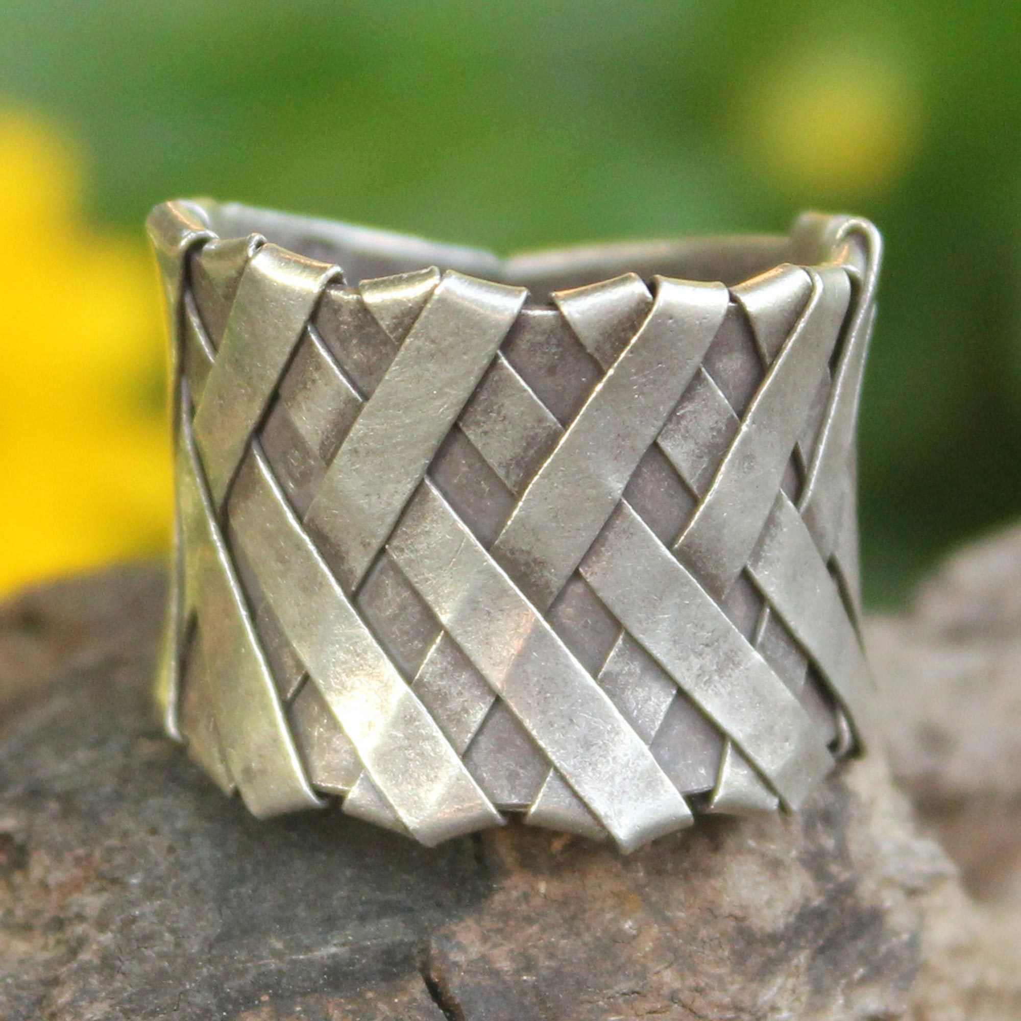 Woven silver ribbons in Lanna (northern Thai) style become a beautiful ring. From Achara, its concave contours host fascinating textures.