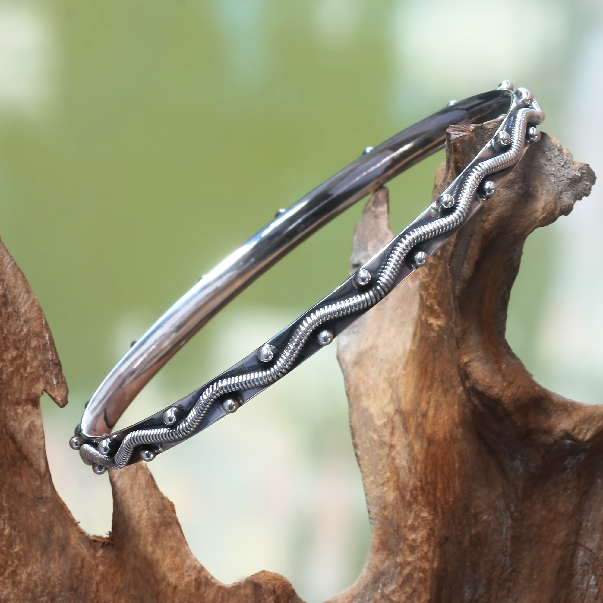 Sterling silver bangle bracelet, 'Ocean Waves'