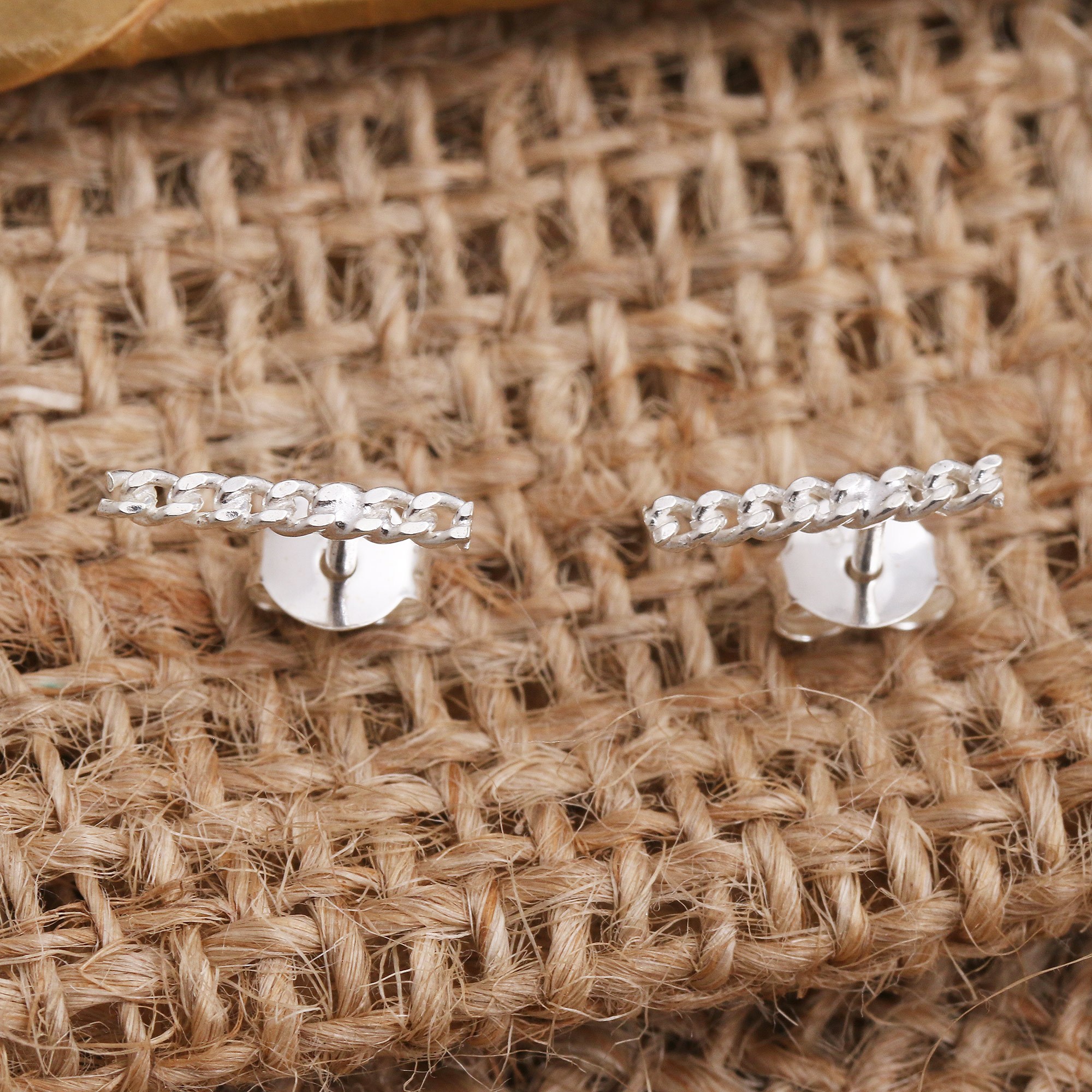 Sterling Silver Bar Post Earrings Chain Motif, 'Channeled Chain'