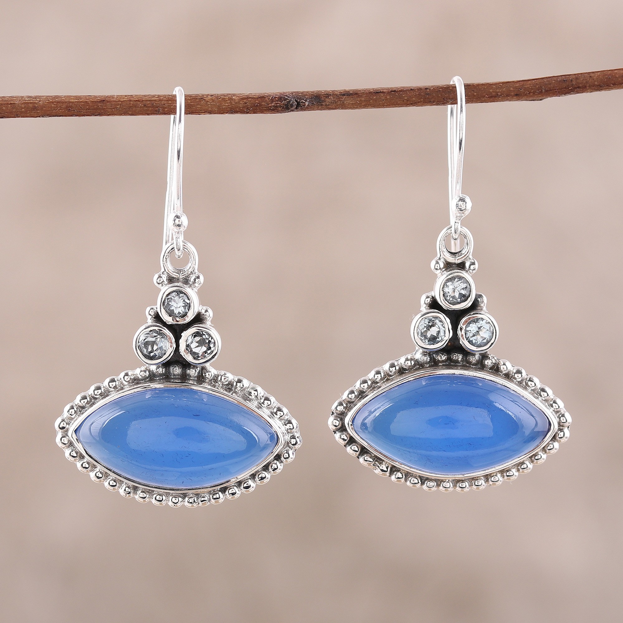 Sterling Silver Blue Topaz and Chalcedony Dangle Earrings, 'Joyous Blue'