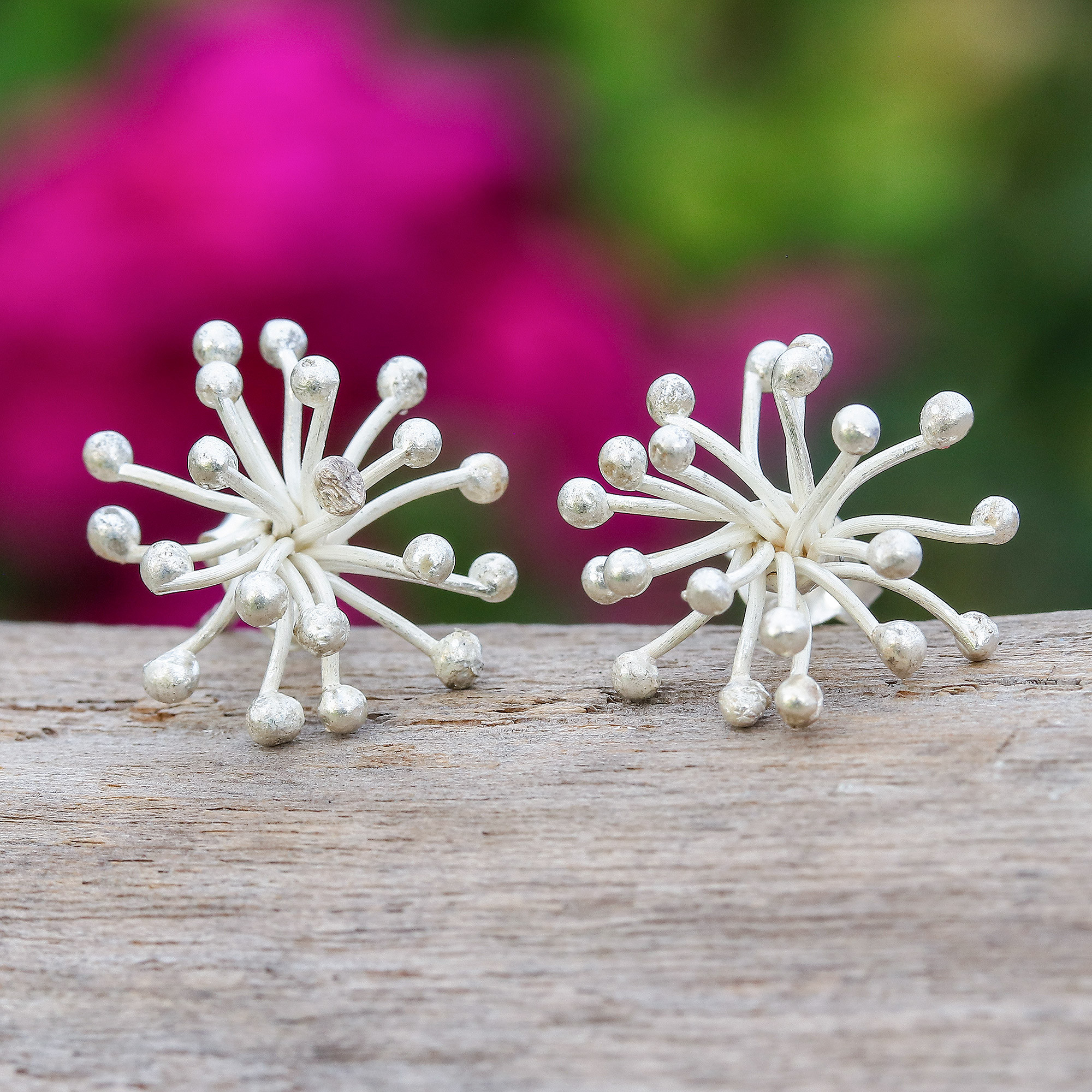 Sterling Silver Button Earrings Inspired by Floral Pistils, 'Pollen Delight'