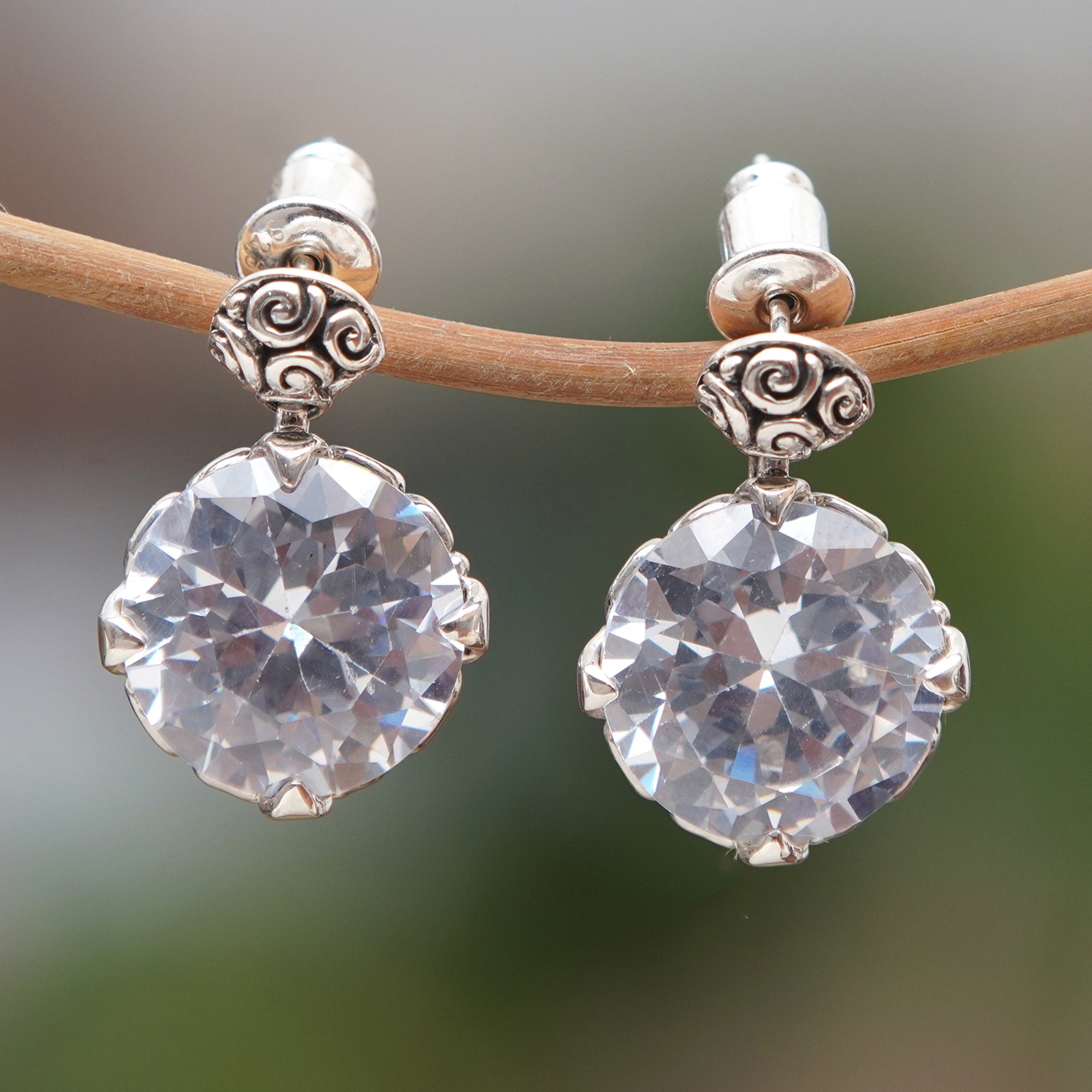 Expertly crafted in Bali, this pair of sophisticated sterling silver button earrings will be your best companion for every occasion, be it in the morning, afternoon or evening. Zayd Makarim adorns the lovely accessories with cubic zirconia and what he calls "Buddha curl" patterns, his artistic reinterpretation of timeless Balinese spiral and swirl motifs.