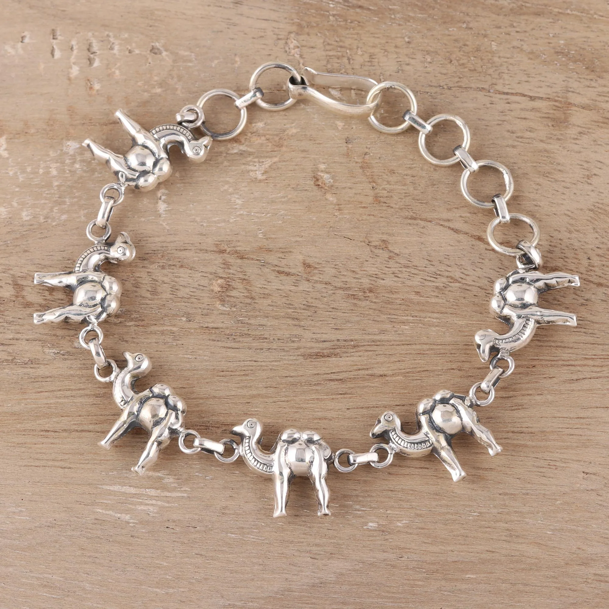 Sterling Silver Camel Link Bracelet from India, 'Desert Ferry'