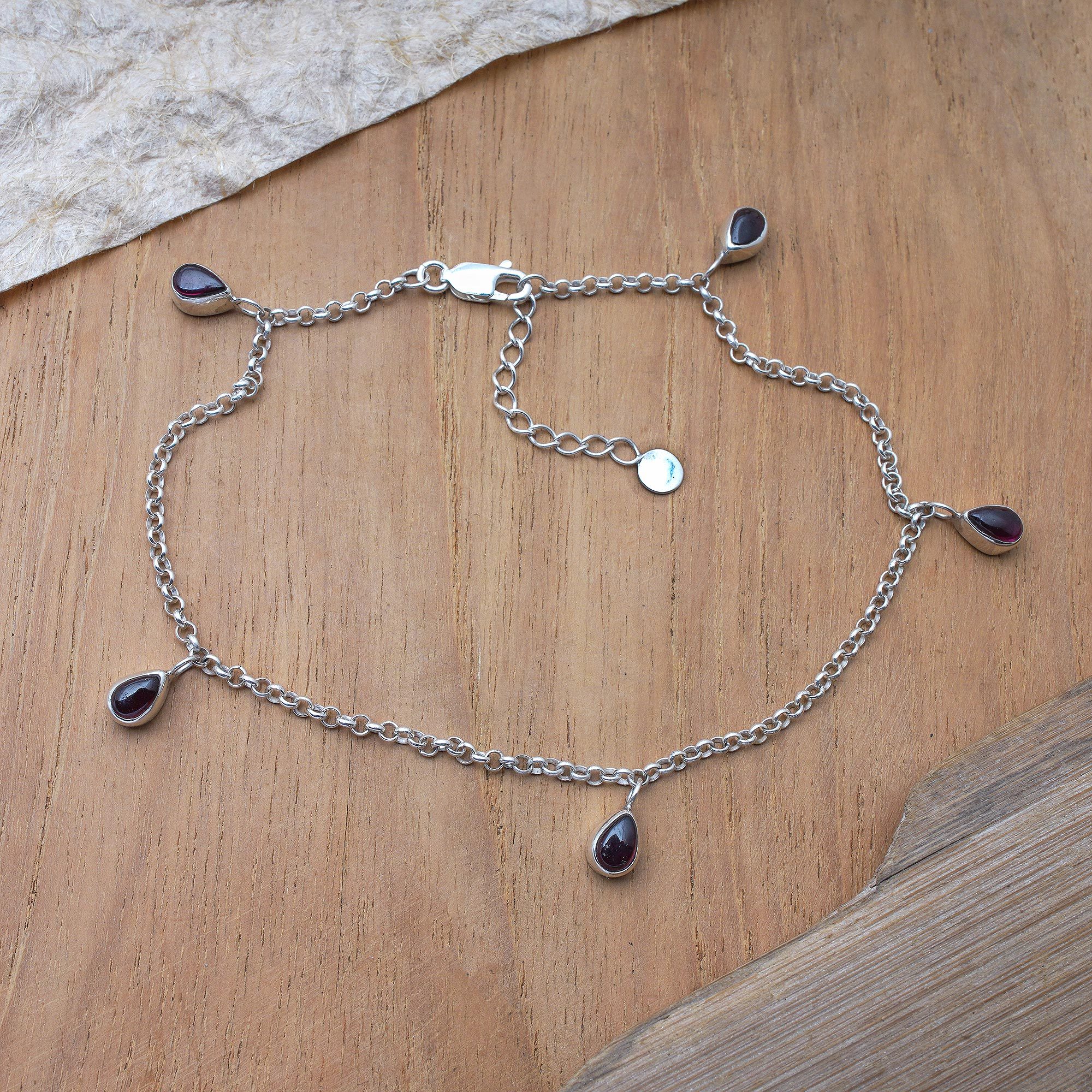 Sterling Silver Charm Anklet with Amethyst Gemstones, 'Violaceous Beauty'