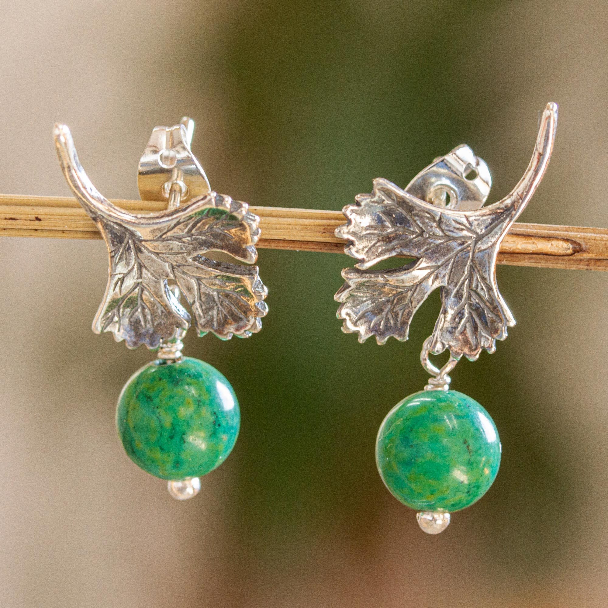 Once a symbol of lust, coriander leaves are captivating in sterling silver earrings. Flora María contrasts the earrings' oxidized finish with blue-green beads of reconstituted turquoise.