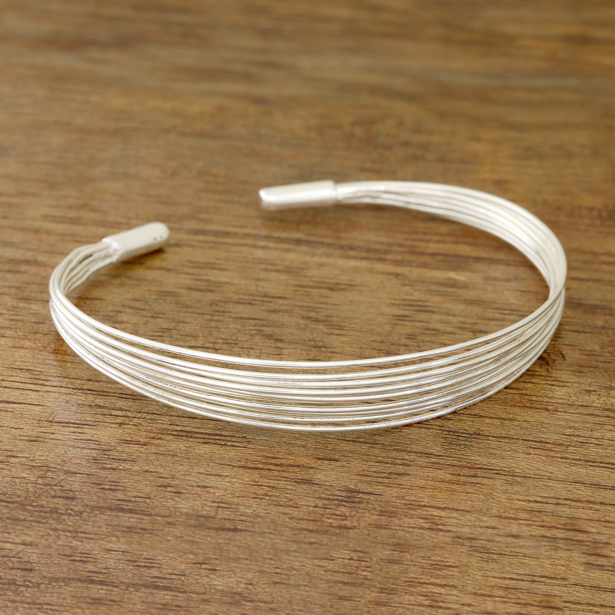 As delightful as it is beautiful, this cuff bracelet features strands of high-polish sterling silver that encircle the wrist side-by-side. Neetu Barathi from India designs this striking bracelet.