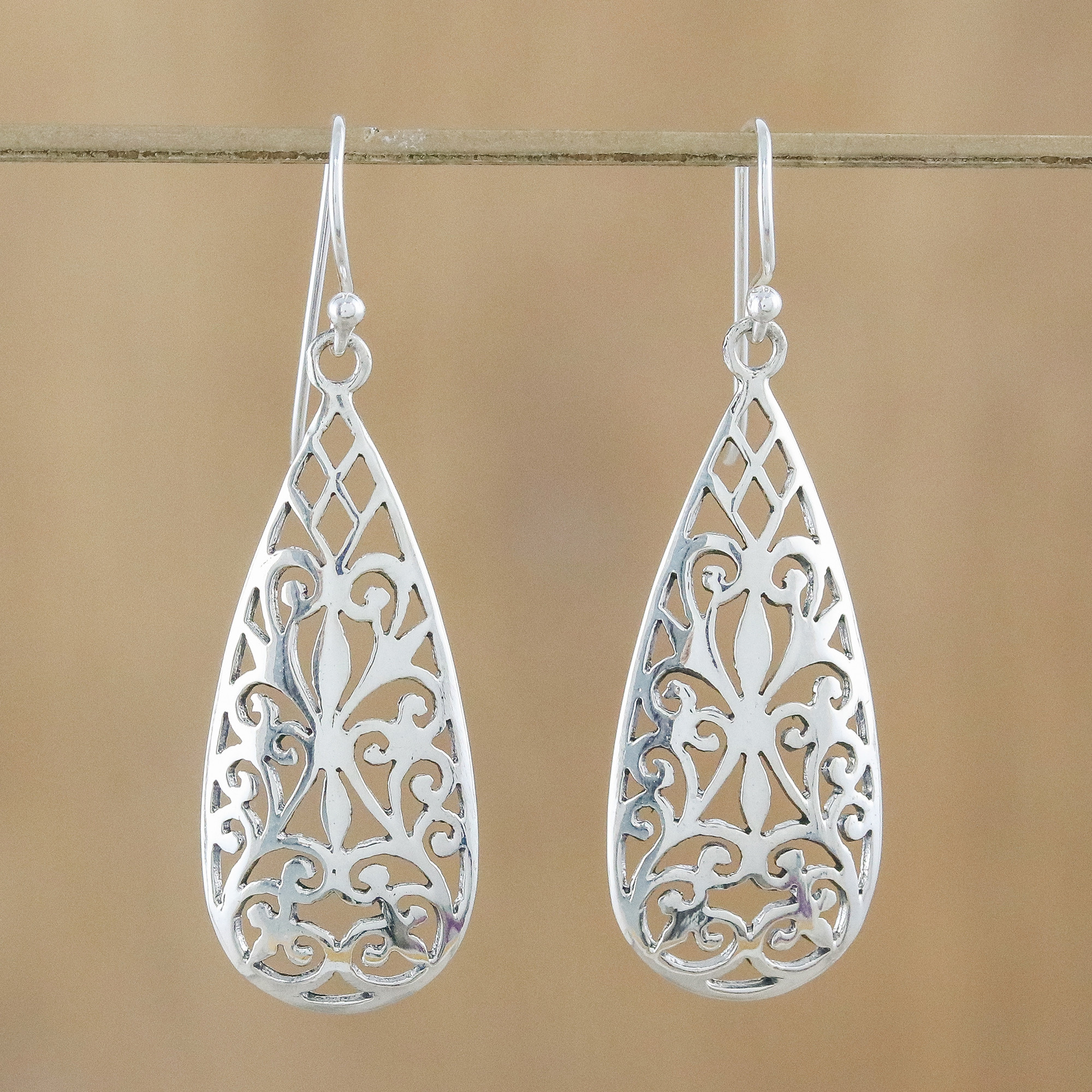 Sterling Silver Curlicue Dangle Earrings from Thailand, 'Espalier'