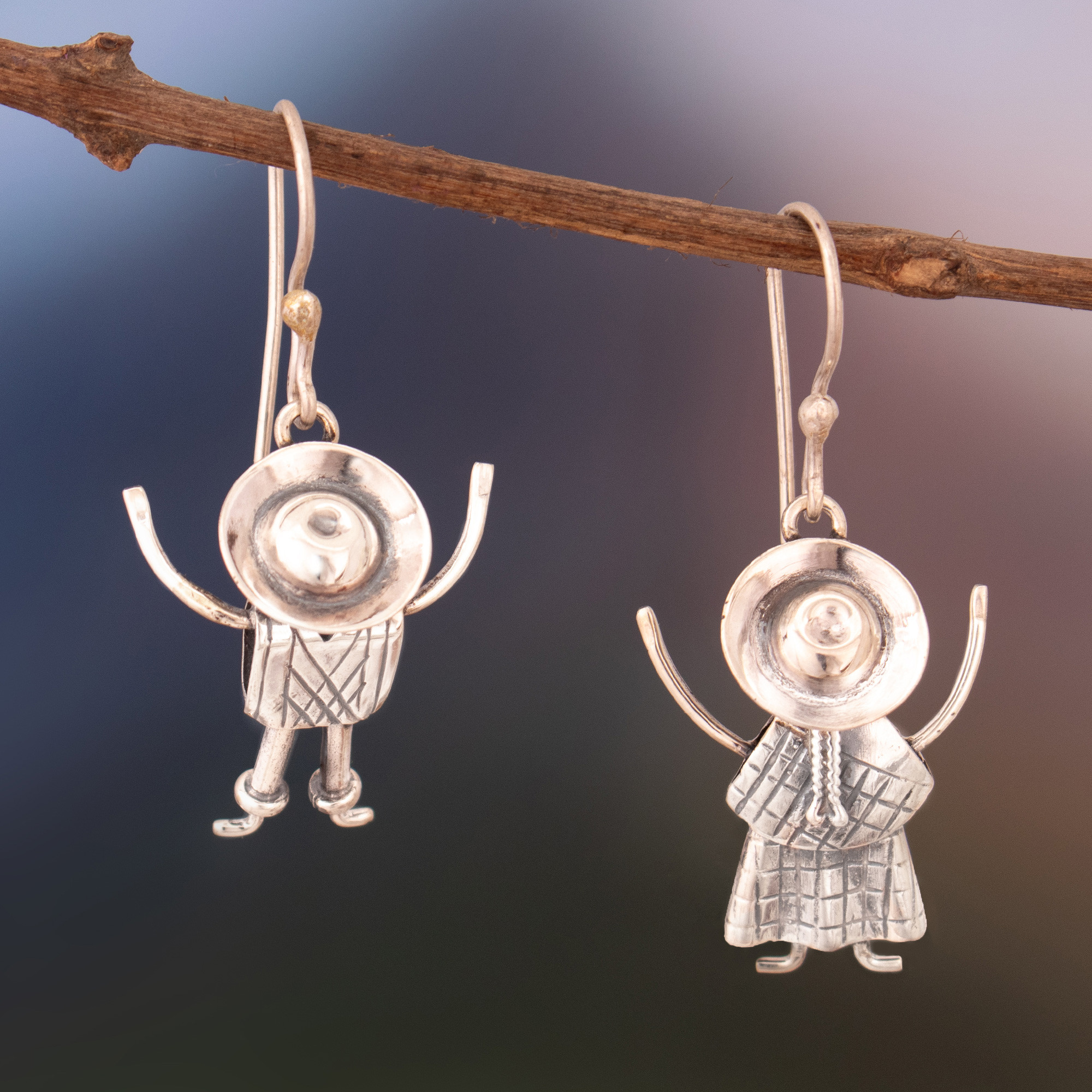 Sterling Silver Dangle Earrings of Andean People from Peru, 'Cuzco Love'