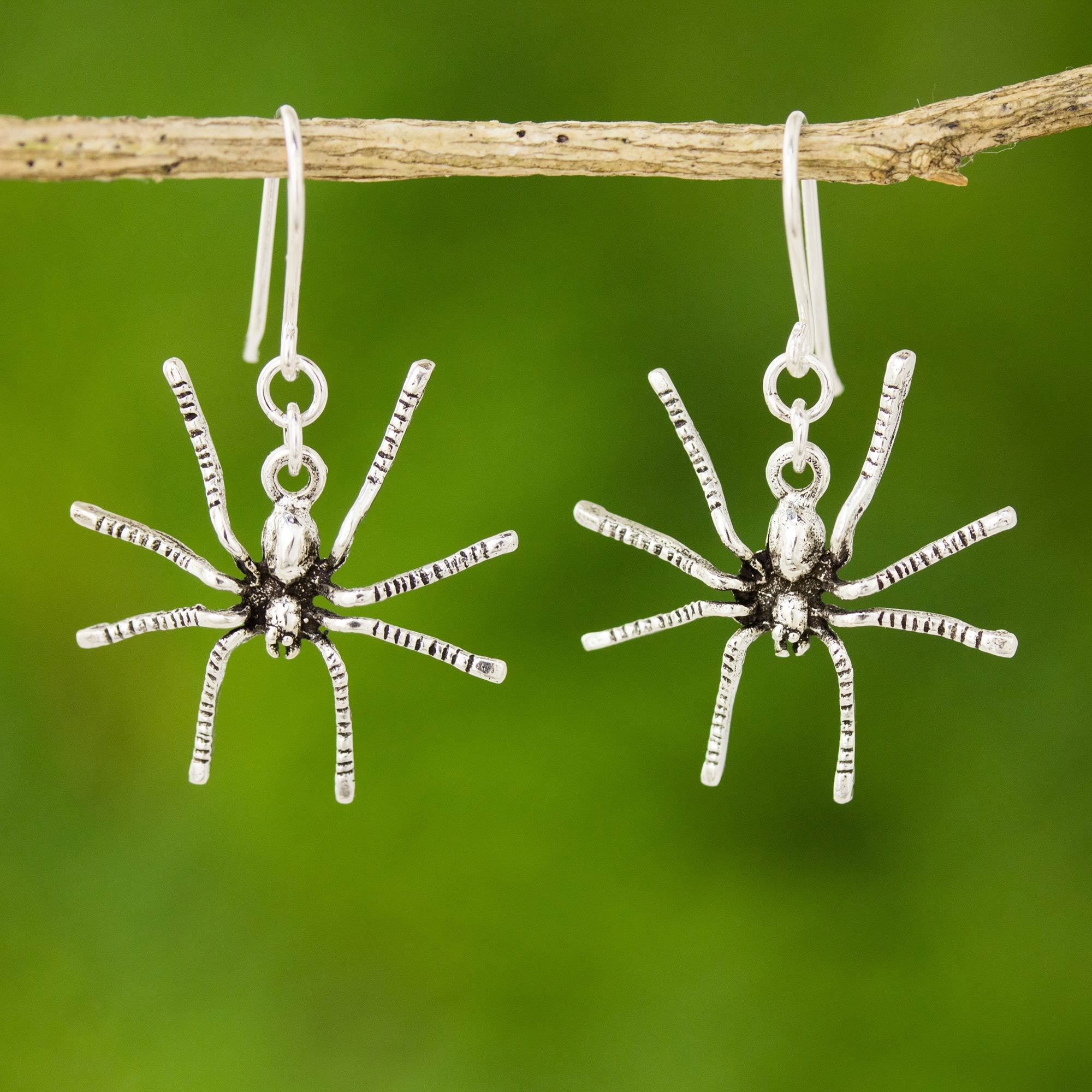 Sterling Silver Dangle Earrings, 'Sterling Spiders'