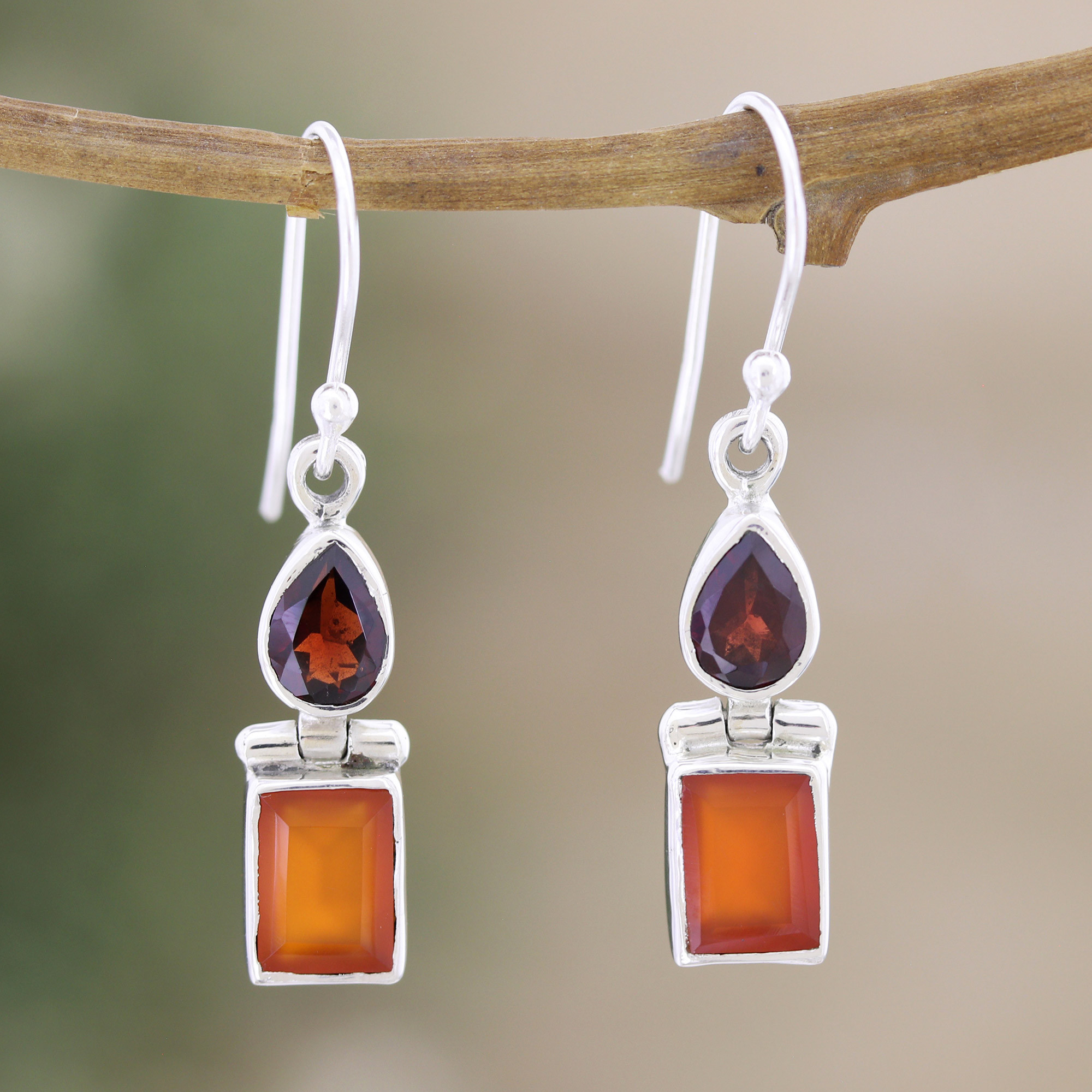 Sterling Silver Dangle Earrings with Carnelian and Garnet, 'Red & Chic'