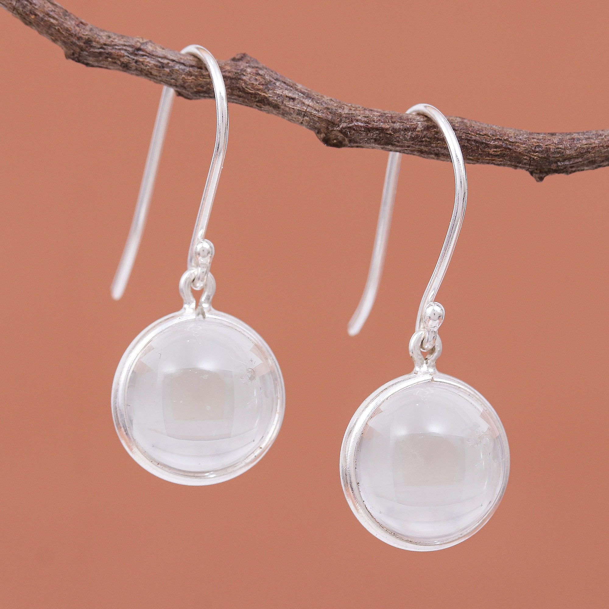 Sterling Silver Dangle Earrings with Clear Quartz Bead, 'Crystal Elegance'