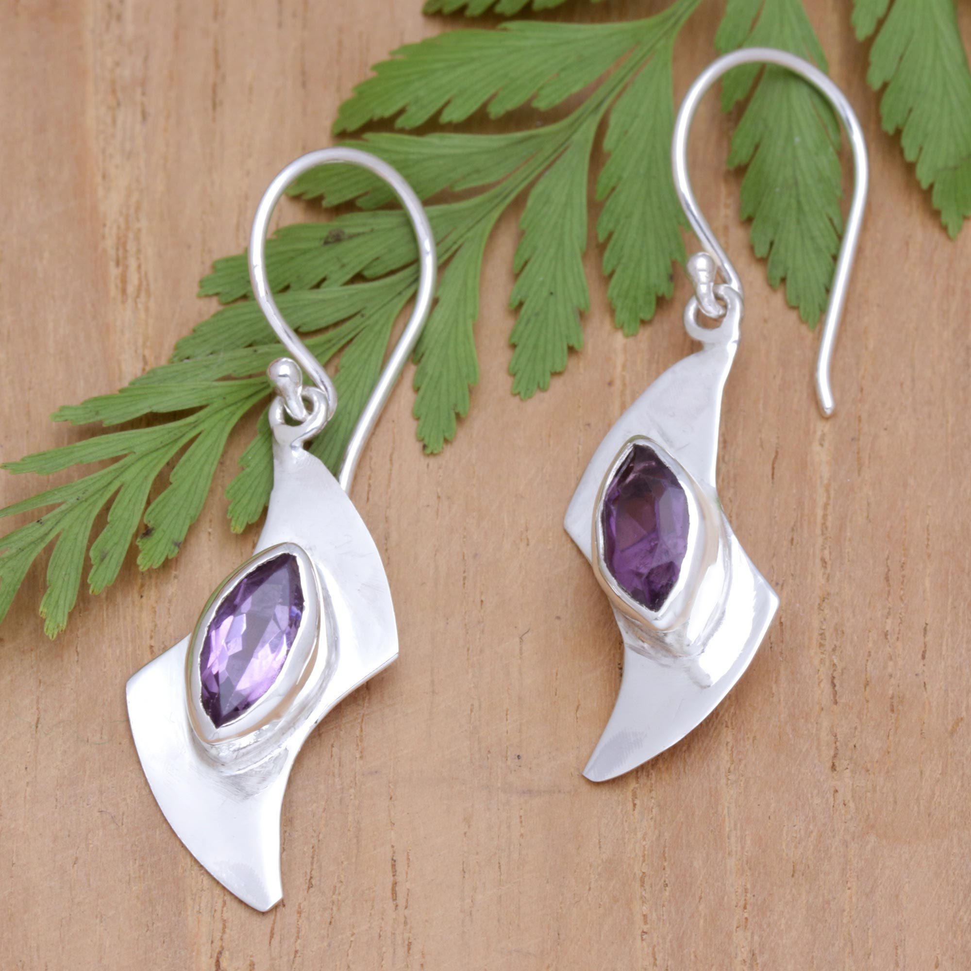 Sterling Silver Dangle Earrings with Faceted Amethyst Stones, 'Purple Boomerang'