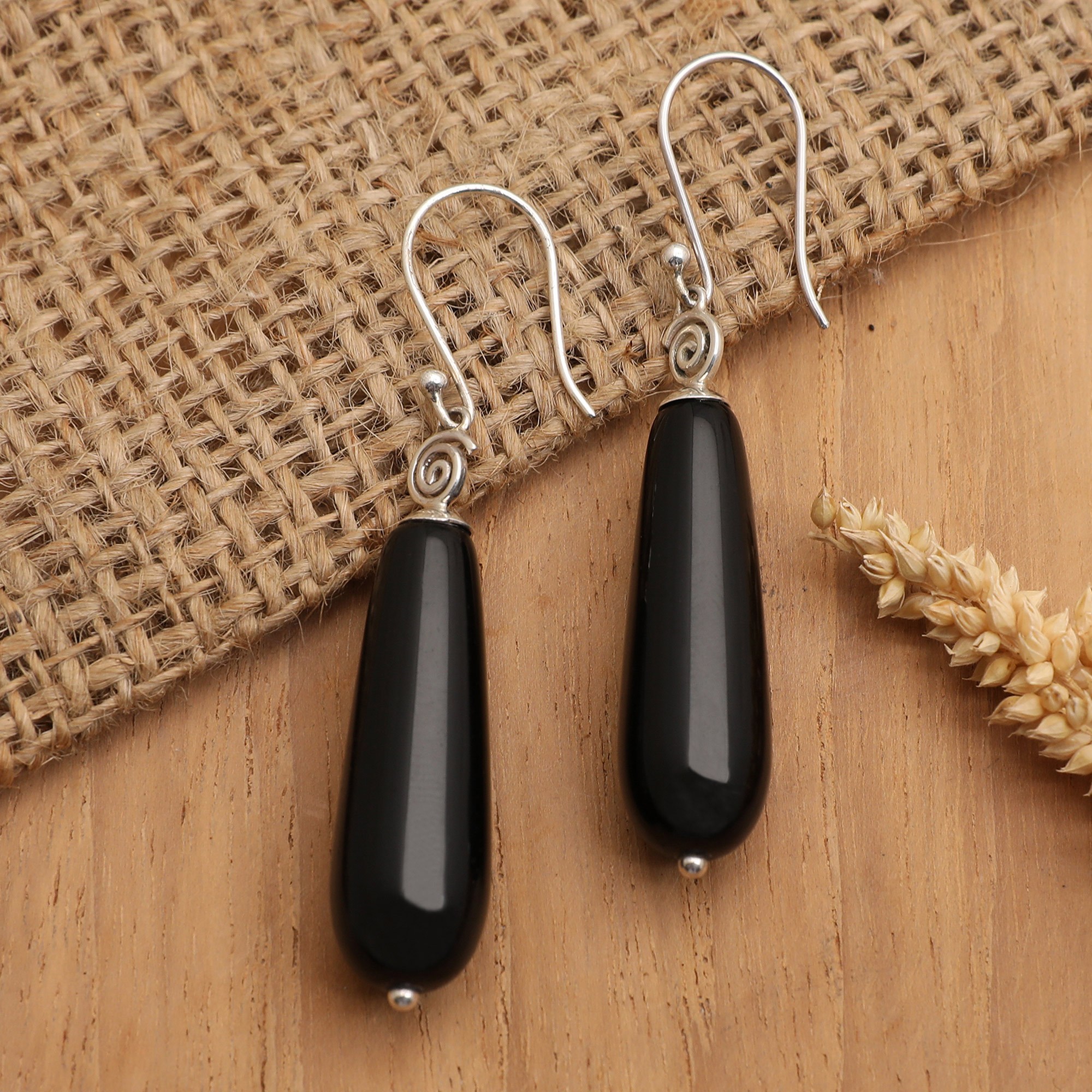 Bali's Ketut Udiana designs a pair of stunning sterling silver dangle earrings featuring dreamy onyx gemstones that swing with every move and are crowned by lovely spiral motifs. You can wear these versatile earrings on any occasion that calls for a dose of fashion and flair.
