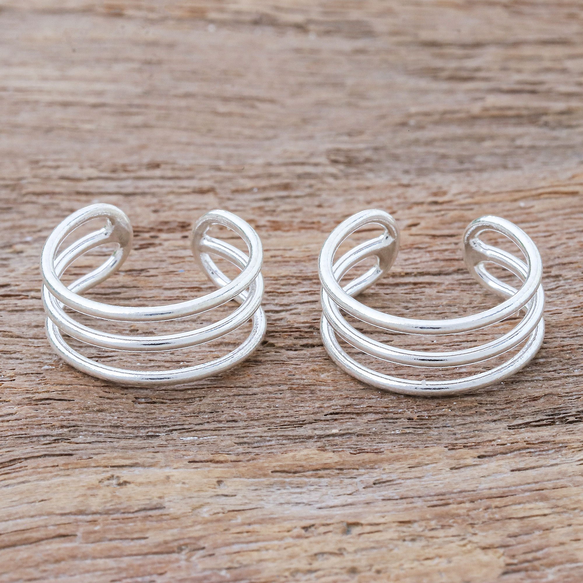 Sterling Silver Ear Cuffs Artisan Crafted in Thailand, 'Day Off'
