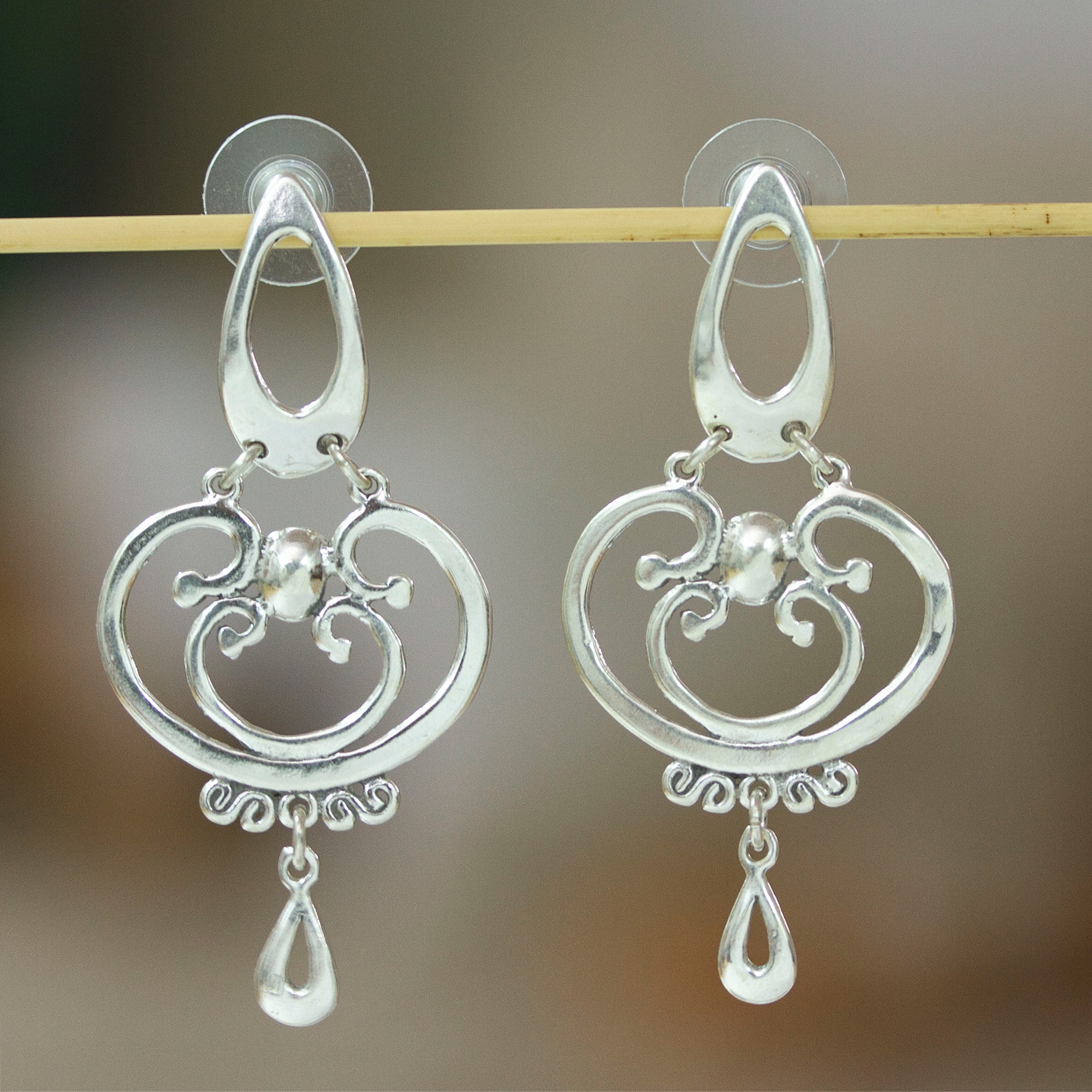 Sterling tendrils swirl and twine in lacy arabesques. Forming delightfully feminine dangle earrings, this design by Gianluca Anzani recalls colonial elegance.
