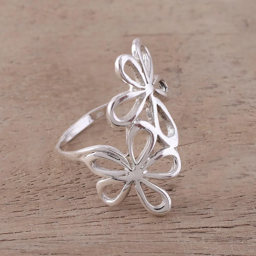 Sterling Silver Floral Cocktail Ring from India, 'Twin Floral Beauty'