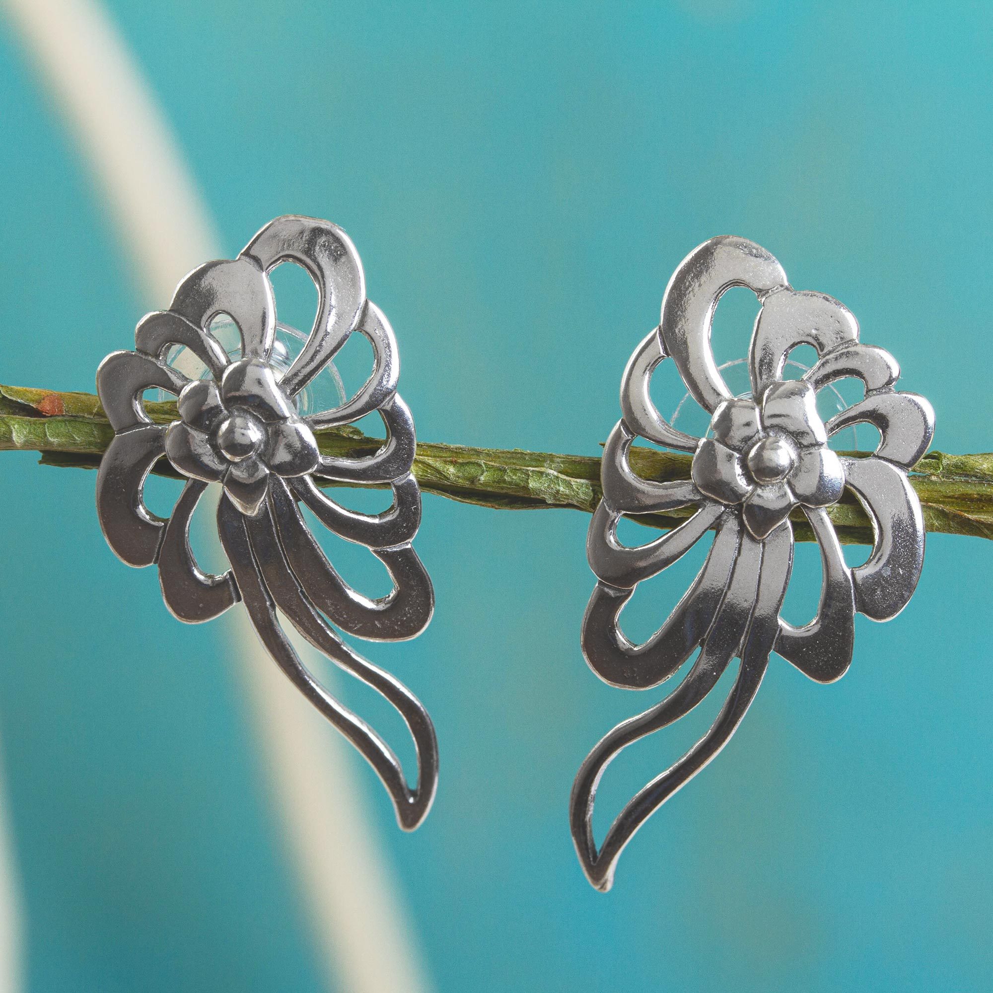 Sterling Silver Floral Drop Earrings Handcrafted in Mexico, 'Colonial Nosegay'
