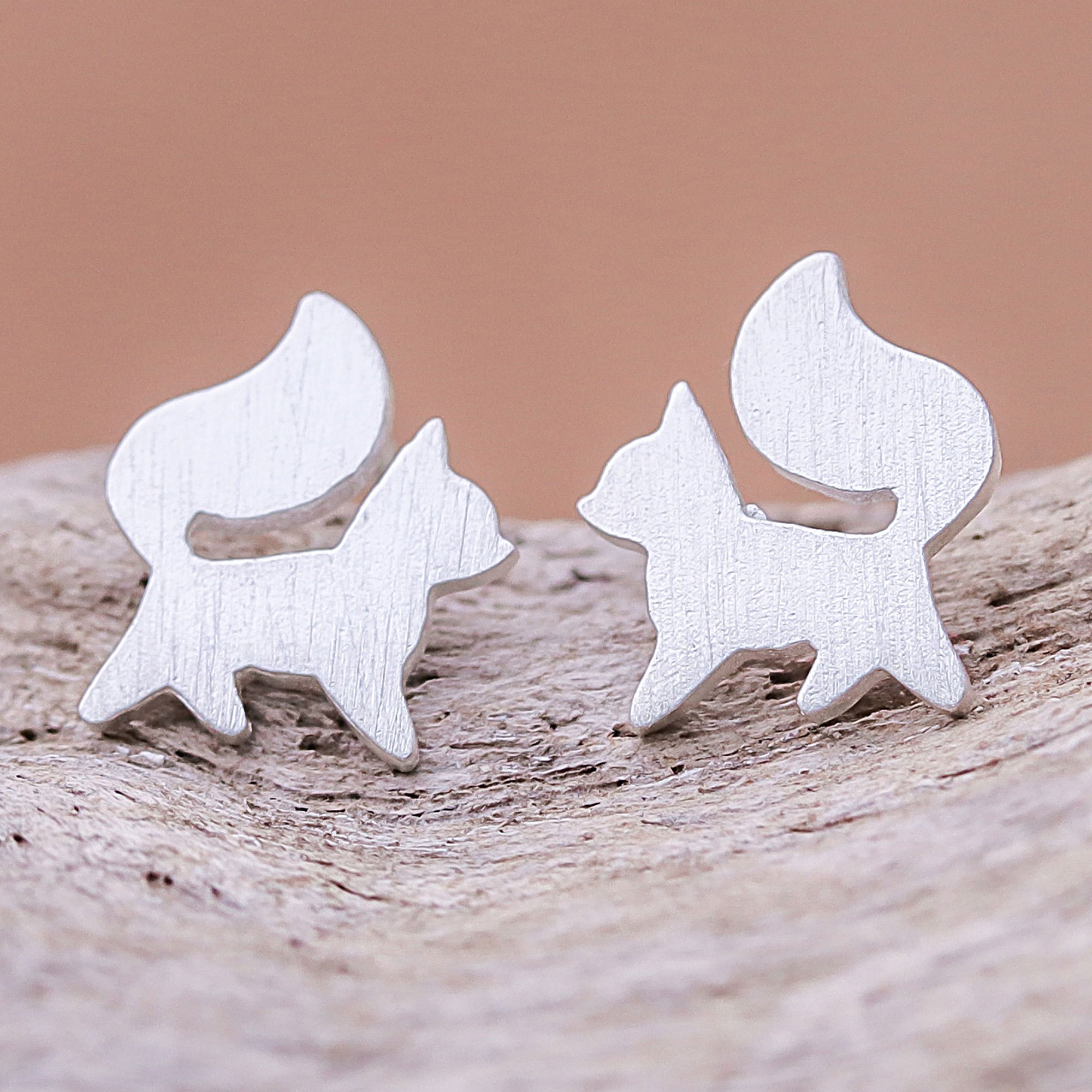 Strutting with poise, two charming foxes are crafted of sterling silver in this pair of stud earrings from Thailand. Jantana designs the earrings, giving each fox a brushed-satin finish that gleams in the light.