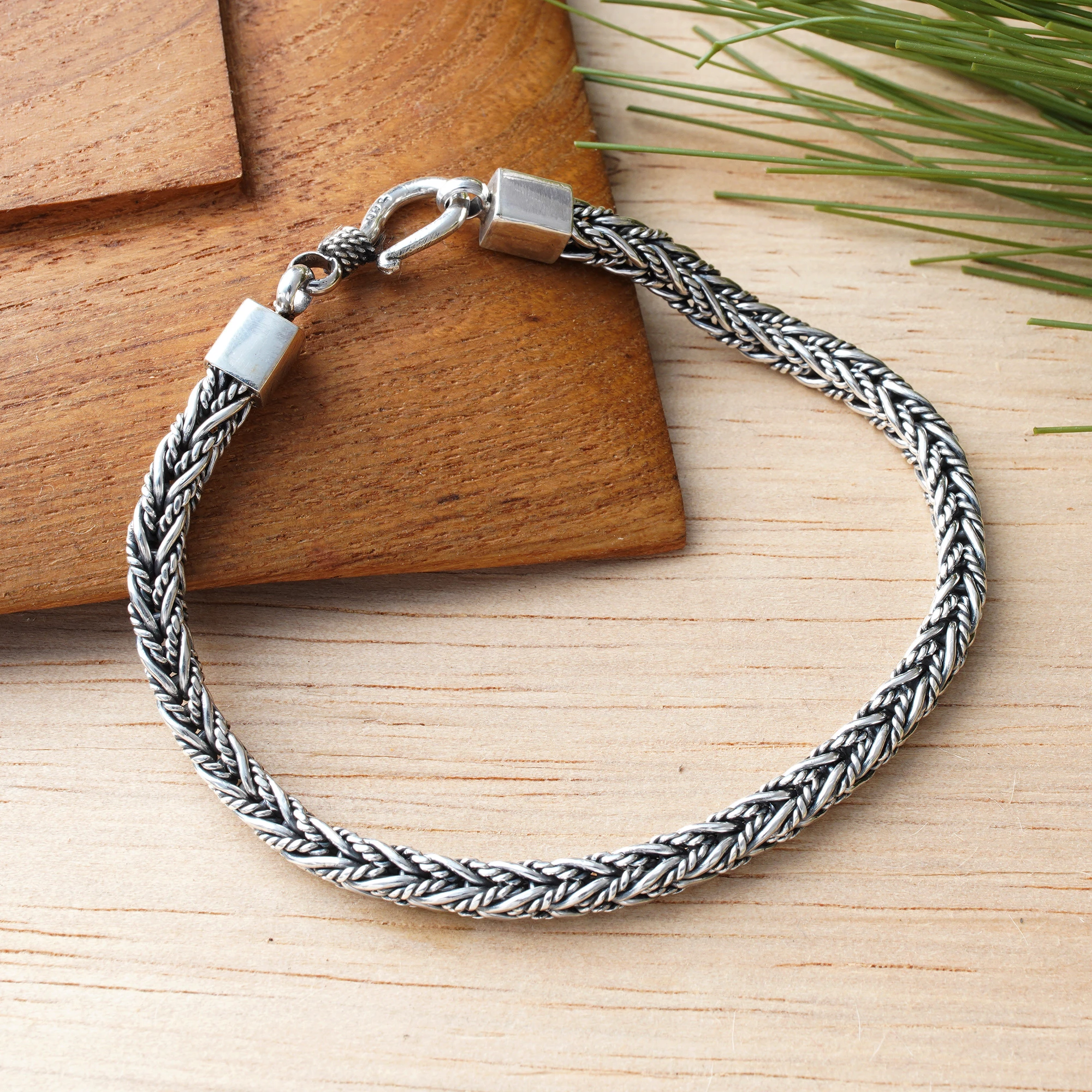 Sterling Silver Foxtail Chain Bracelet from Bali, 'Foxtail Rope'