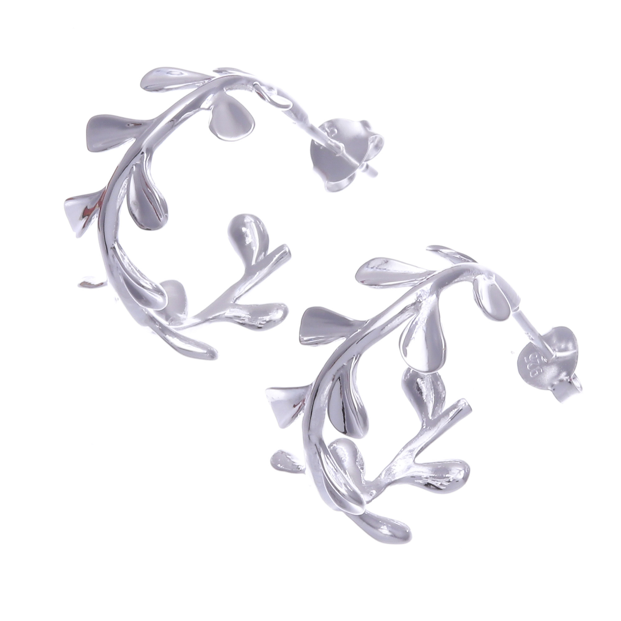Thailand's Lalana crafts a high-quality design drawing inspiration from olive branches, symbols of peace. These sterling silver half-hoop earrings feature a high polish finish for a luminous design that will surely enhance any style, making them suitable for formal or casual occasions.