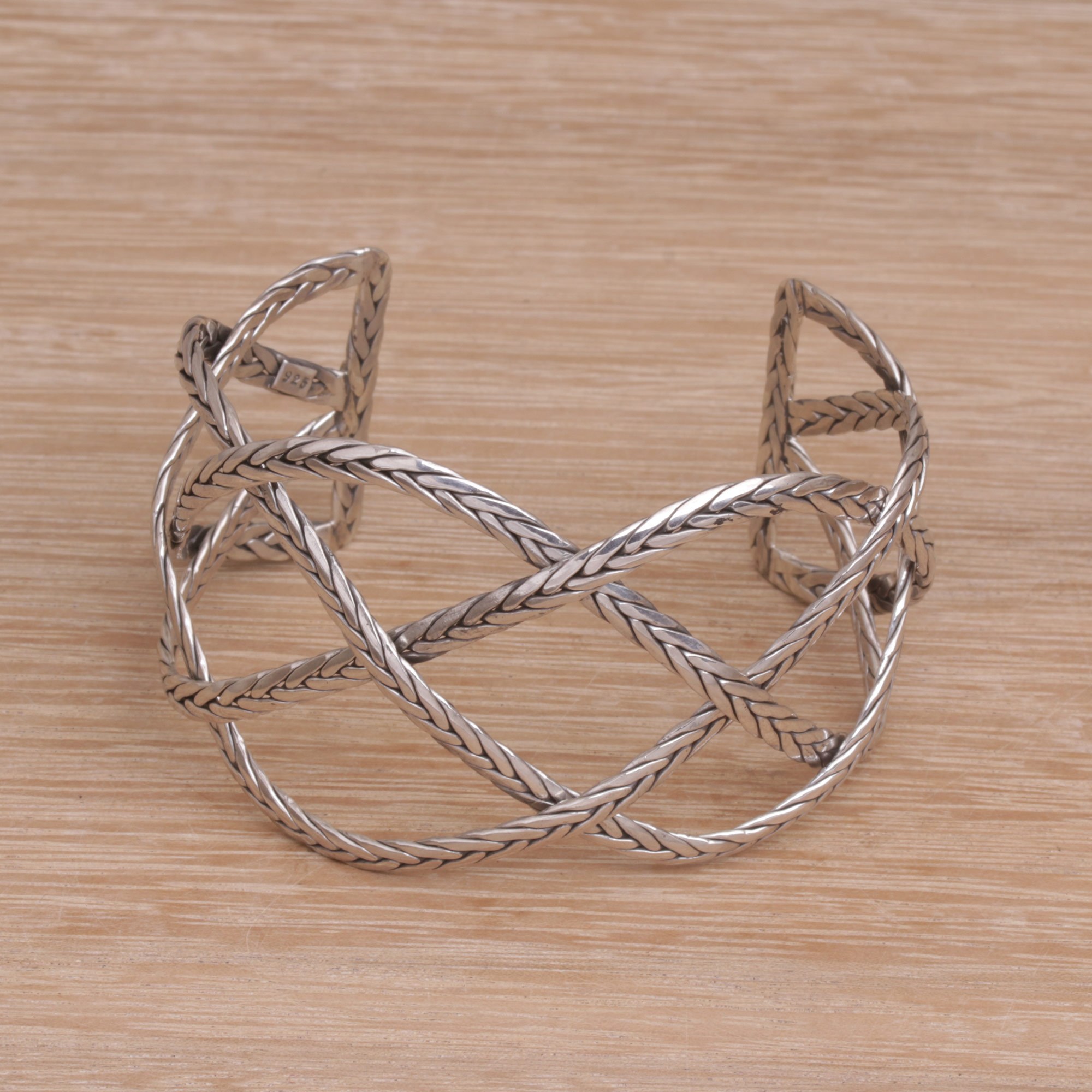 Sterling Silver Handcrafted Cuff Bracelet with Braided Motif, 'Woven Road'