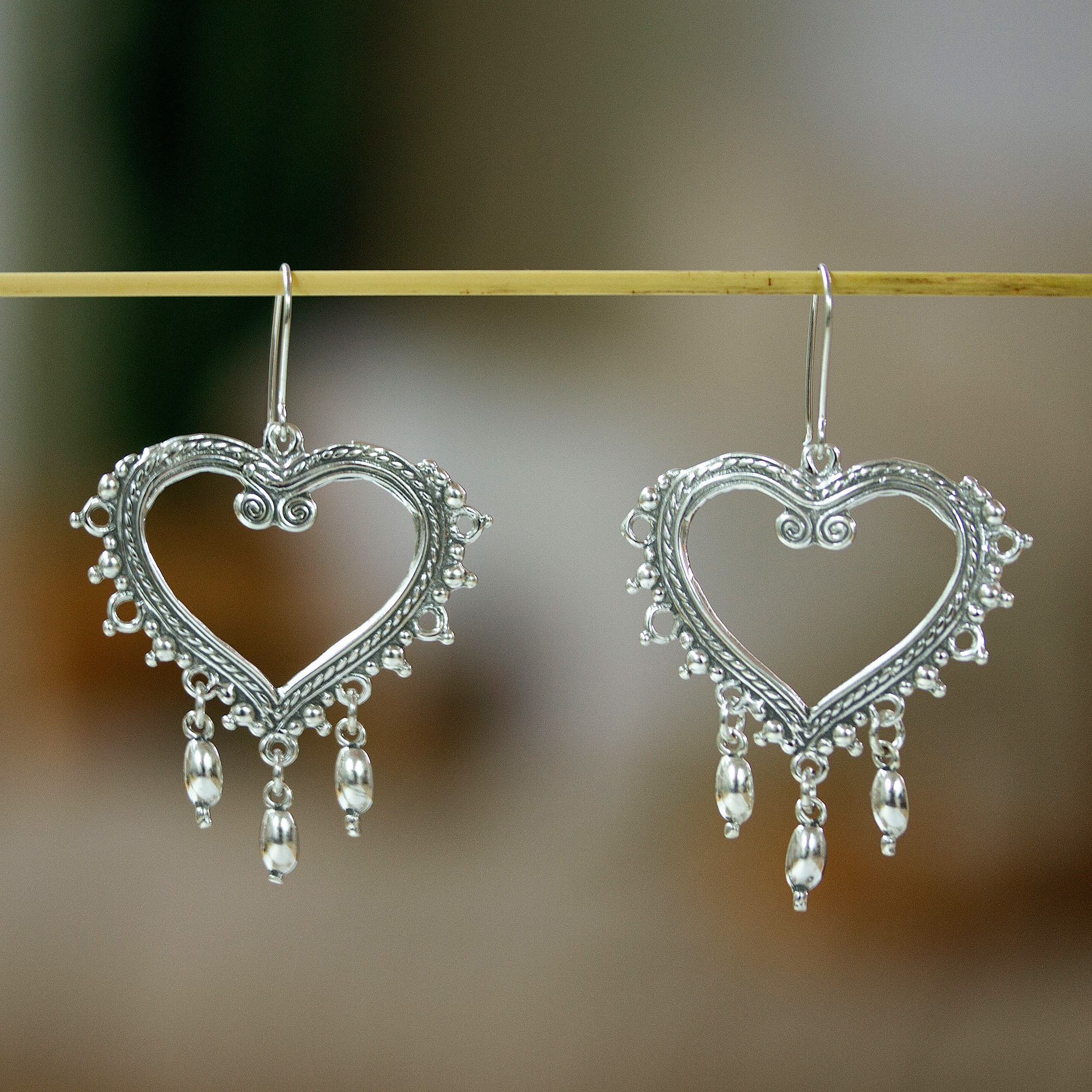 Sterling Silver Heart Earrings for the Romantic, 'Heart of Frida'