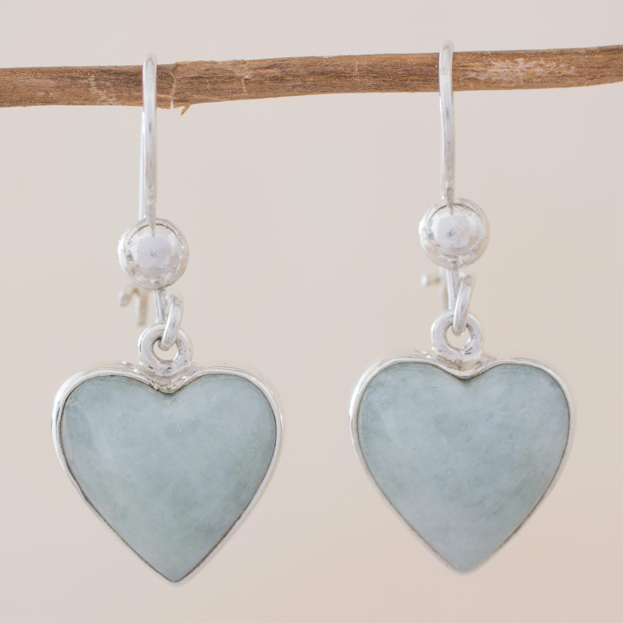 Sterling Silver Heart Earrings with Light Green Jade, 'Innocent Heart'