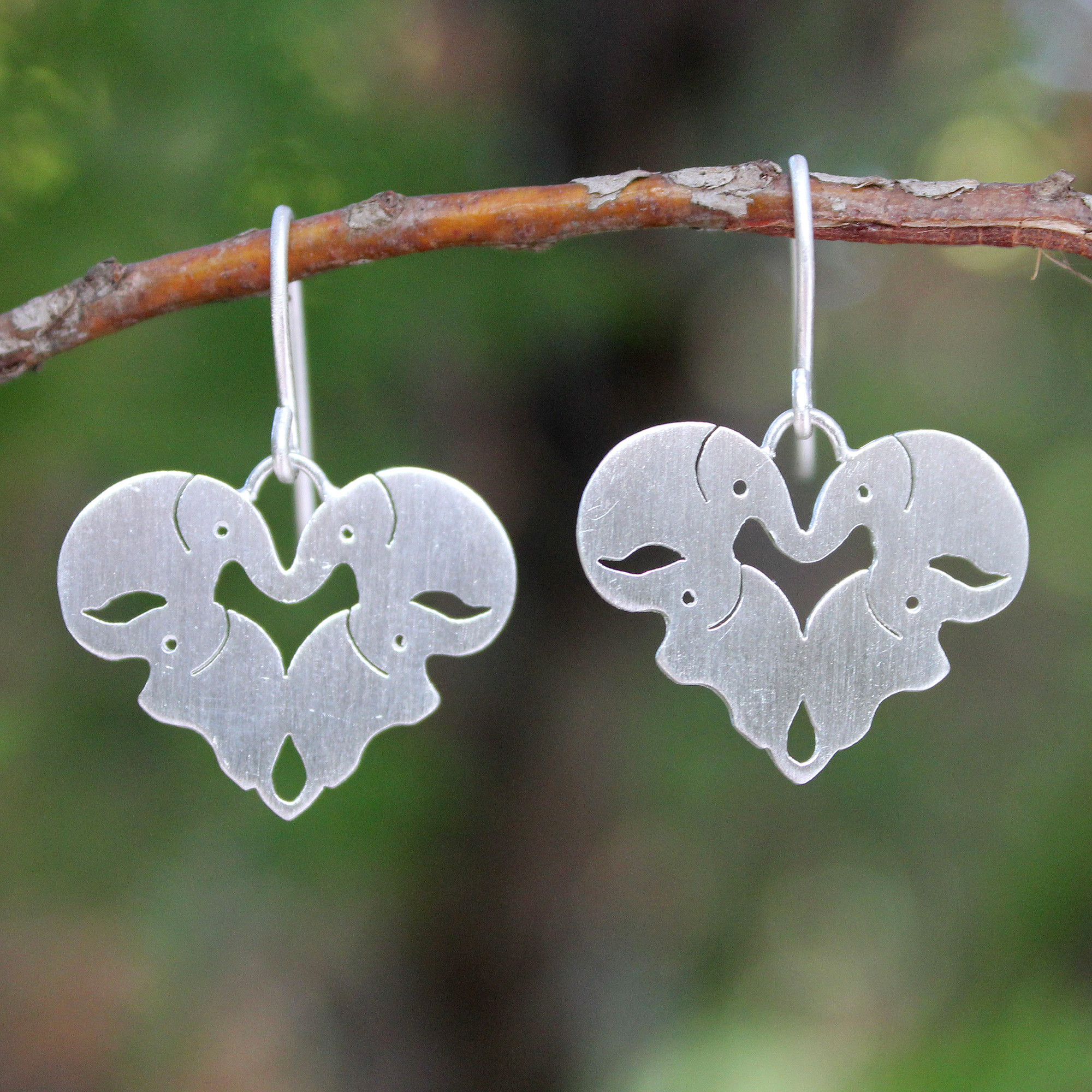 By Jantana from Thailand, these sterling silver earrings feature a brushed satin finish and delicate silhouettes of one of the world's most noble creatures—the elephant. Honoring the close relationships which make families and friendships strong, these treasures remind us how we are connected by love.