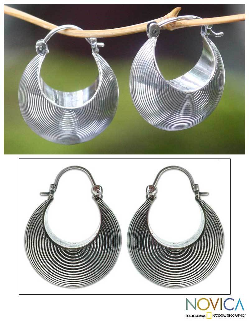 Sterling silver hoop earrings, 'Hypnotic Moon'