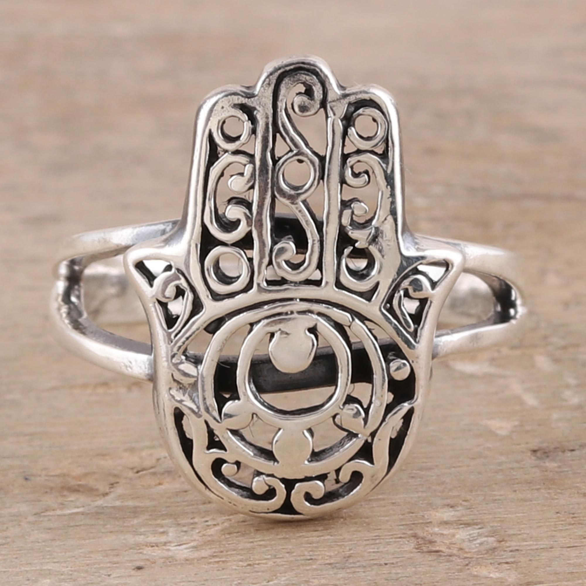 Sterling Silver Jali Hamsa Cocktail Ring from India, 'Jali Hamsa'