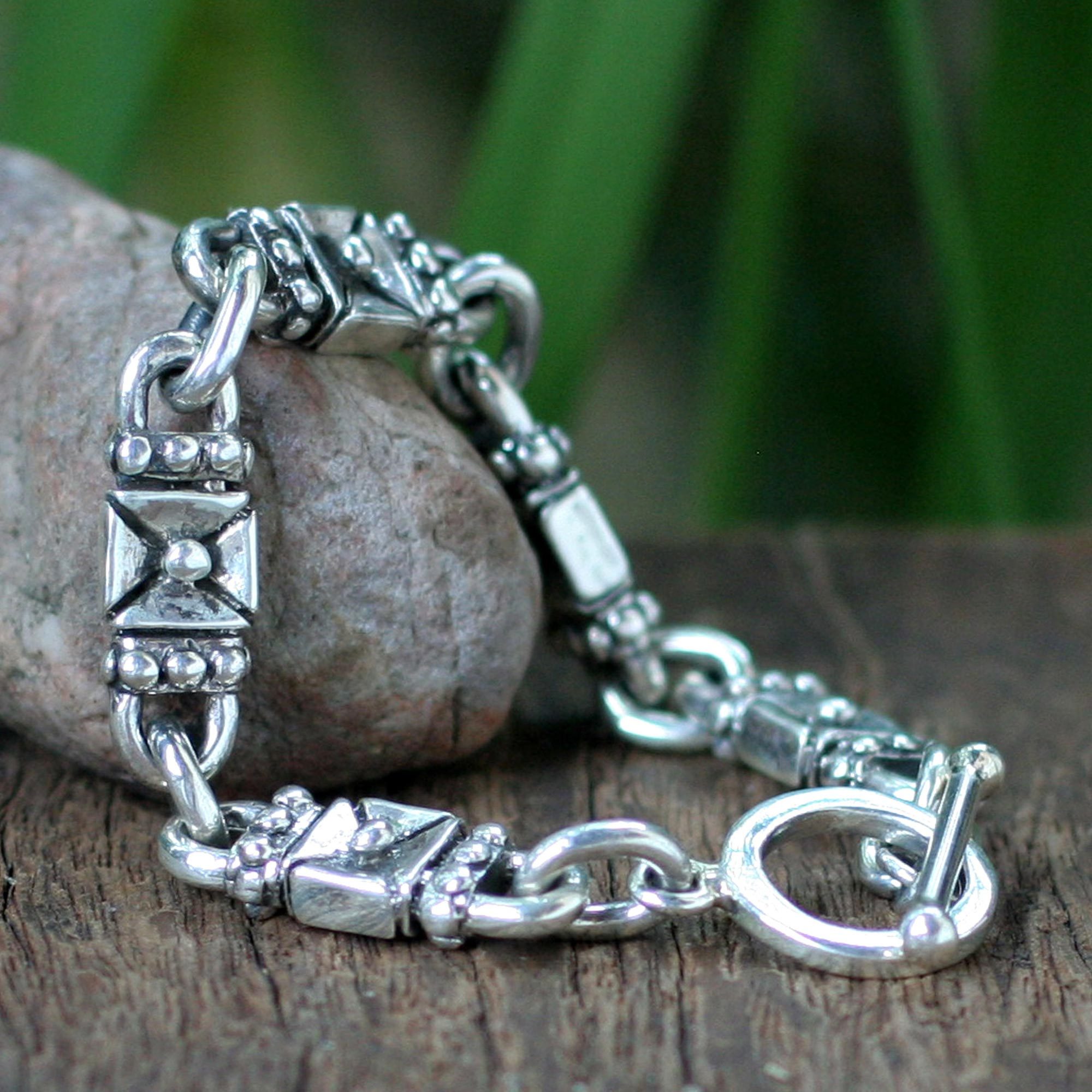 Sterling Silver Link Bracelet, 'Lock and Key'
