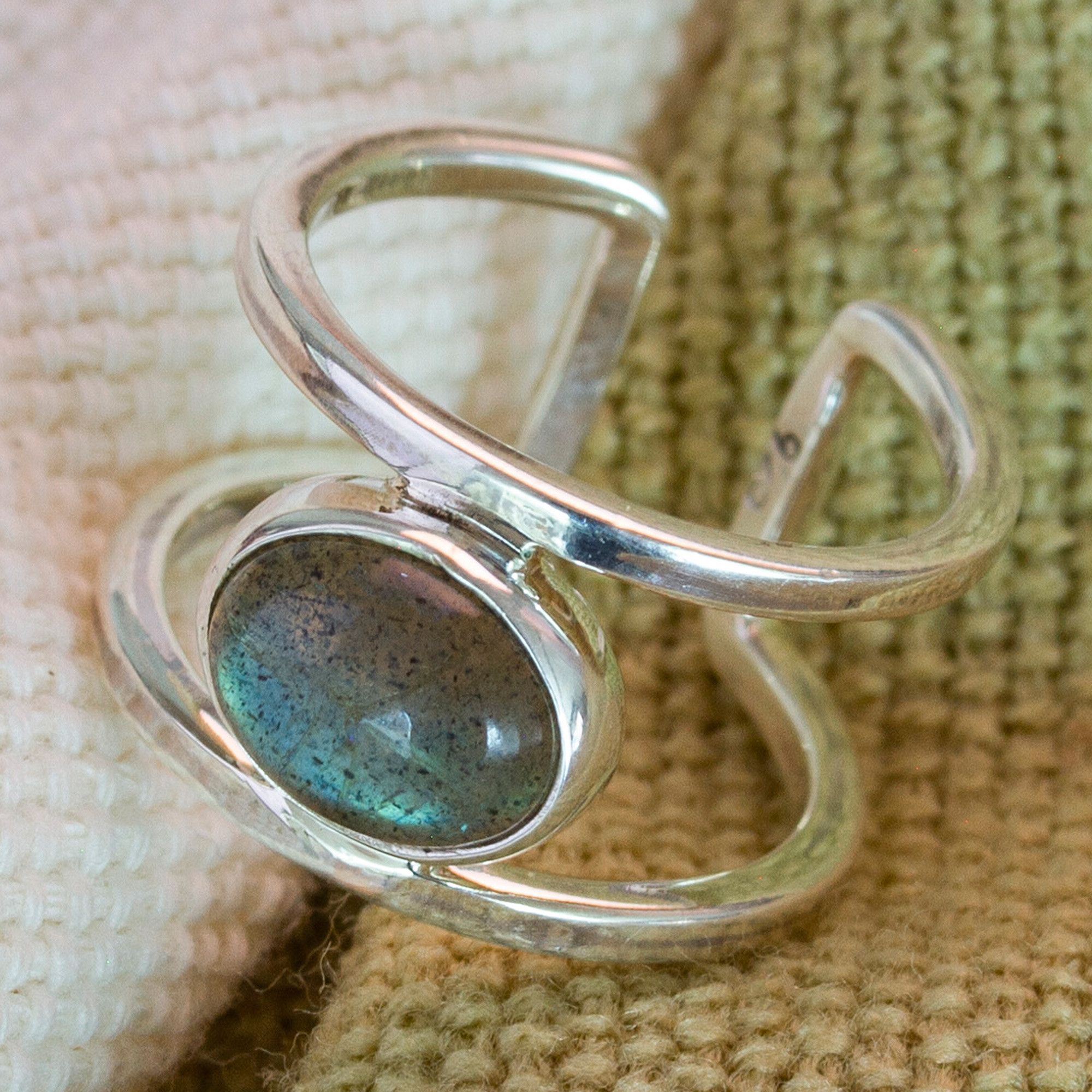 Sterling Silver Modern Wrap Ring with Labradorite Stone, 'Serene Protector'