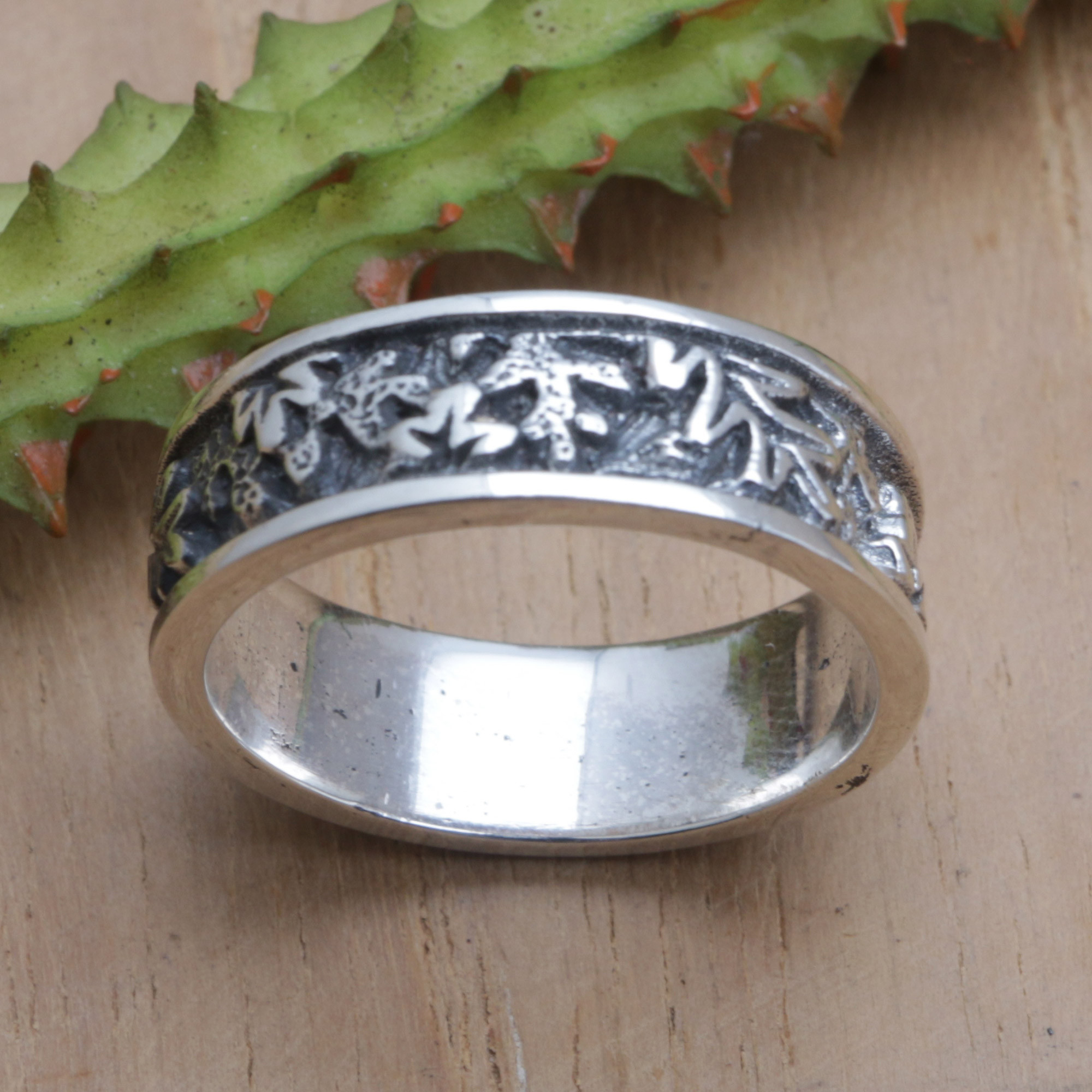 Sterling Silver Monstera Leaf Band Ring from Bali, 'Monstera Caresses'