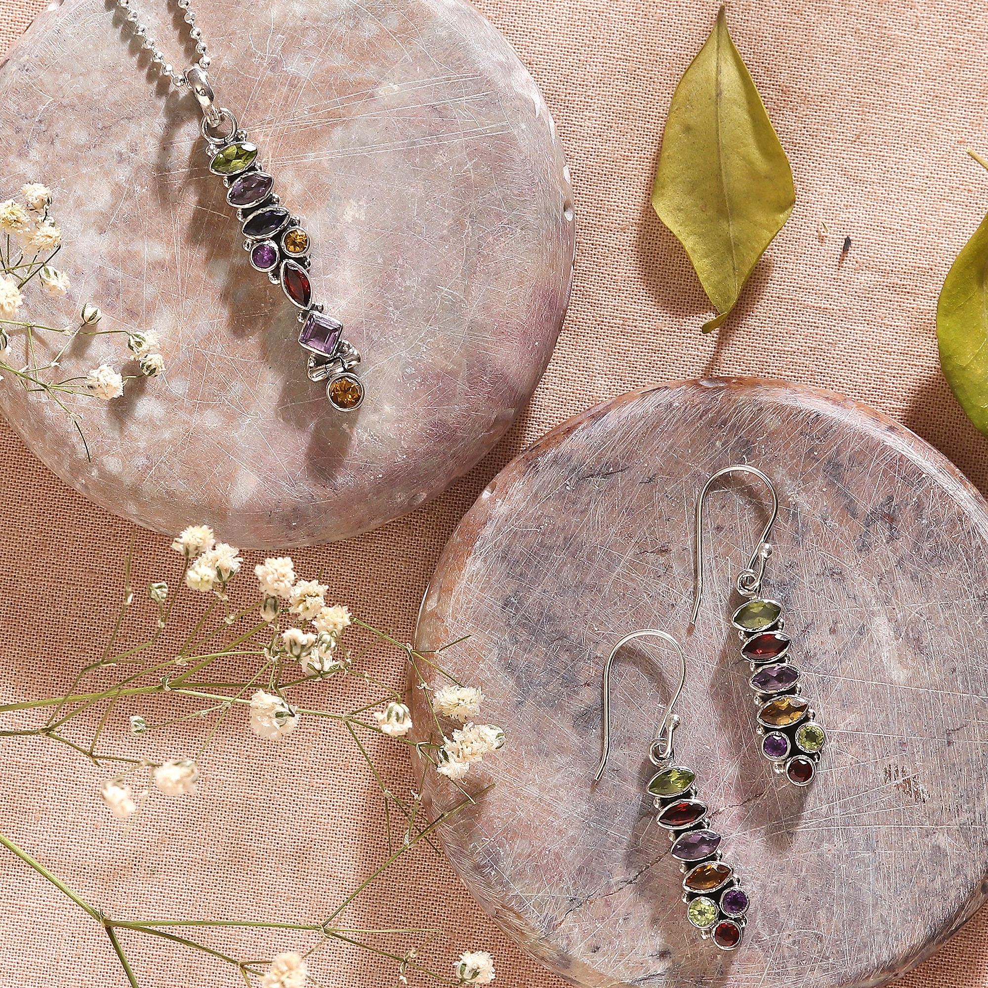 • Sterling silver, amethyst, citrine, garnet and peridot