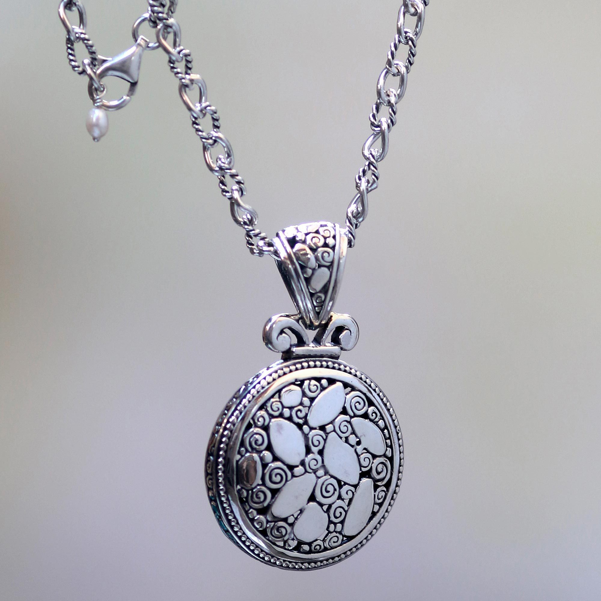 Sterling Silver Necklace with Round Pendant from Bali, 'River Stones'