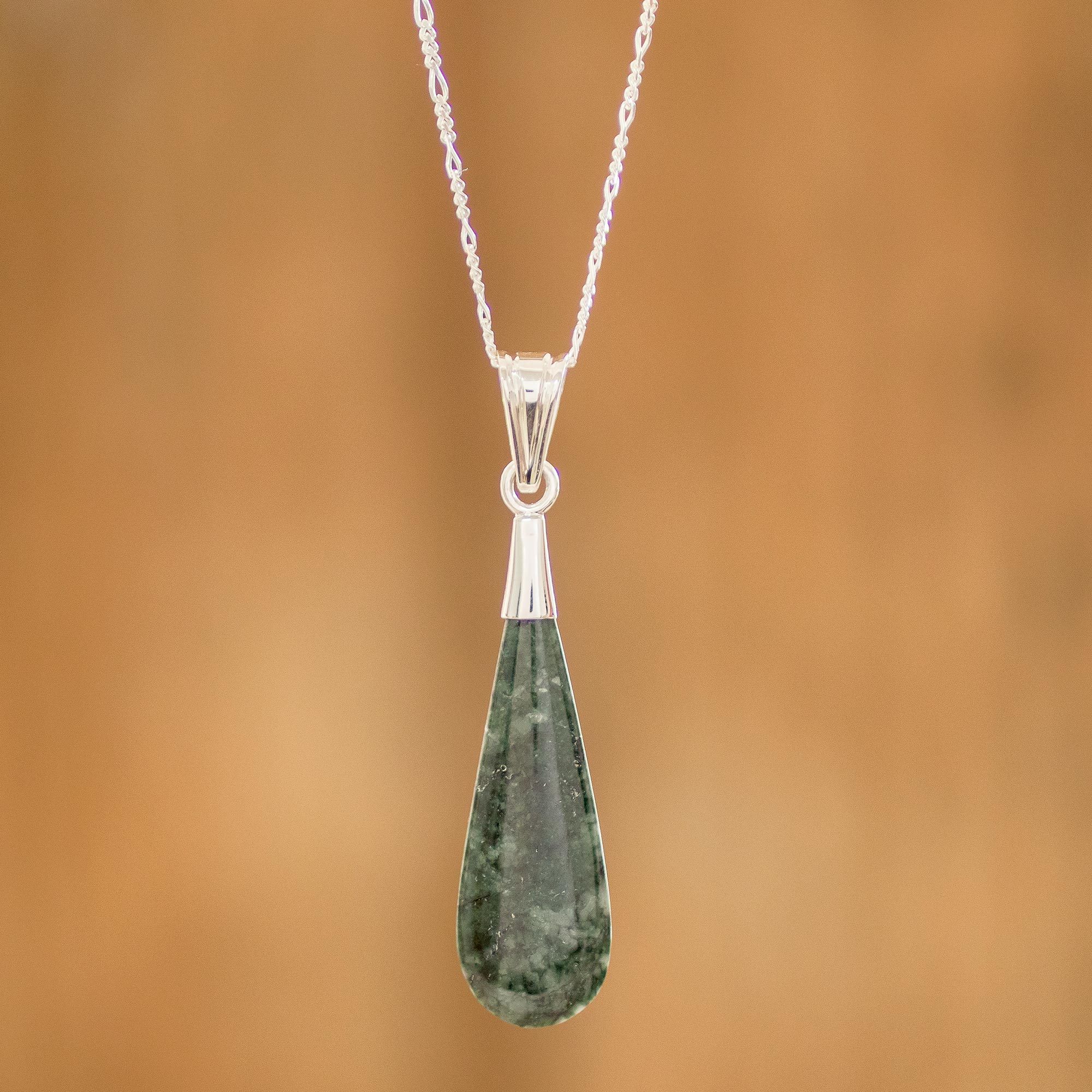 "This design is natural and elegant. We were inspired by the dewdrops we see every morning in our garden," Jiménez Family artisans say. Working with natural jade, they set the drop-shaped gem in sterling silver. It is said that jade attracts love.