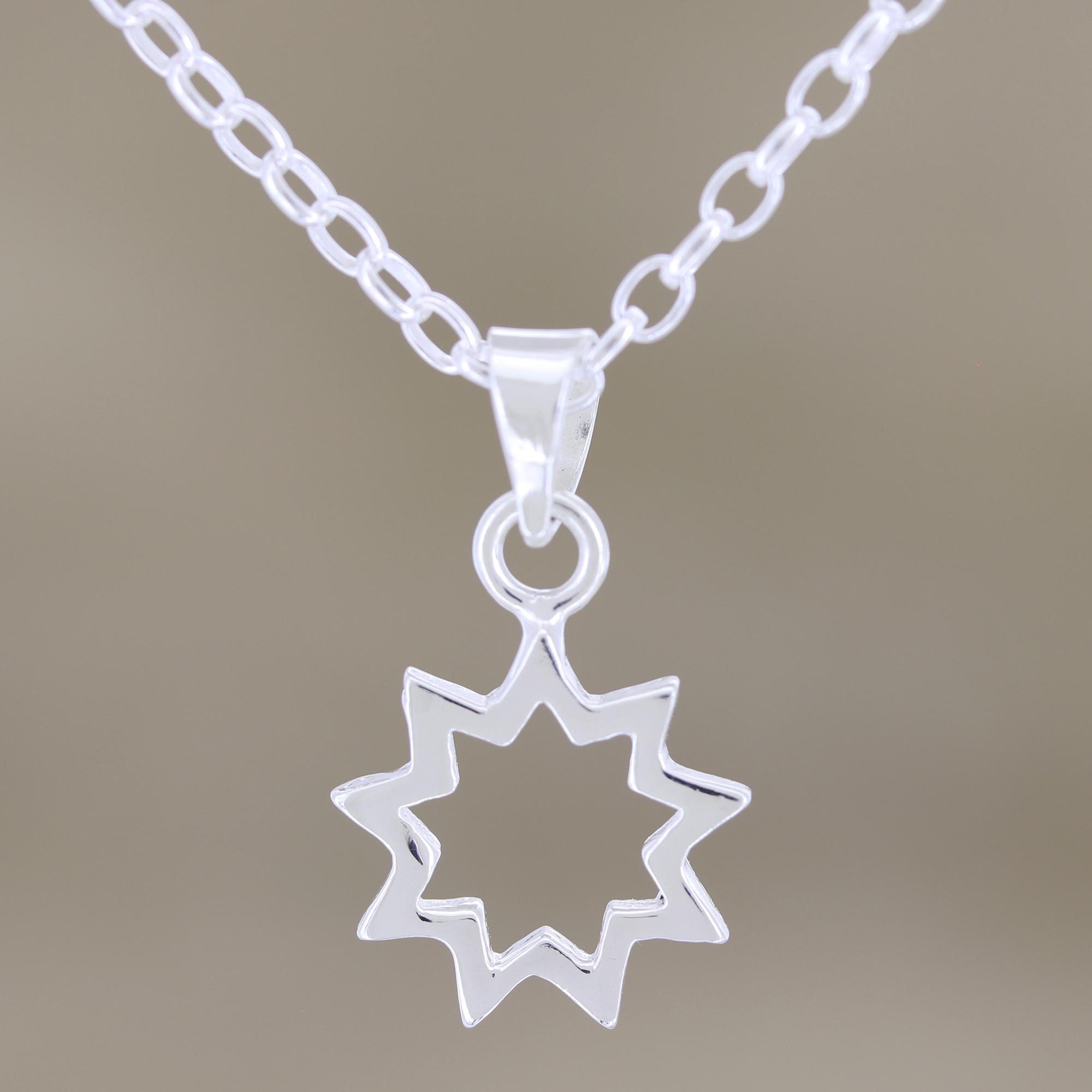 A nine-pointed star shines brightly in this creation from Indian artisan Bhavya Jain. Crafted from polished sterling silver, the necklace features an openwork pendant that dangles sweetly from a sleek silver cable chain.