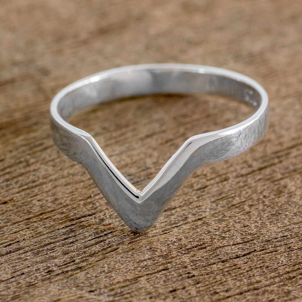 Beautiful in appearance and sensible in design, this Guatemalan ring circles the finger with a band of high-polish sterling silver. Estuardo Jimenez of Guatemala's Jimenez Family designs the ring, adding a chevron motif at the front.