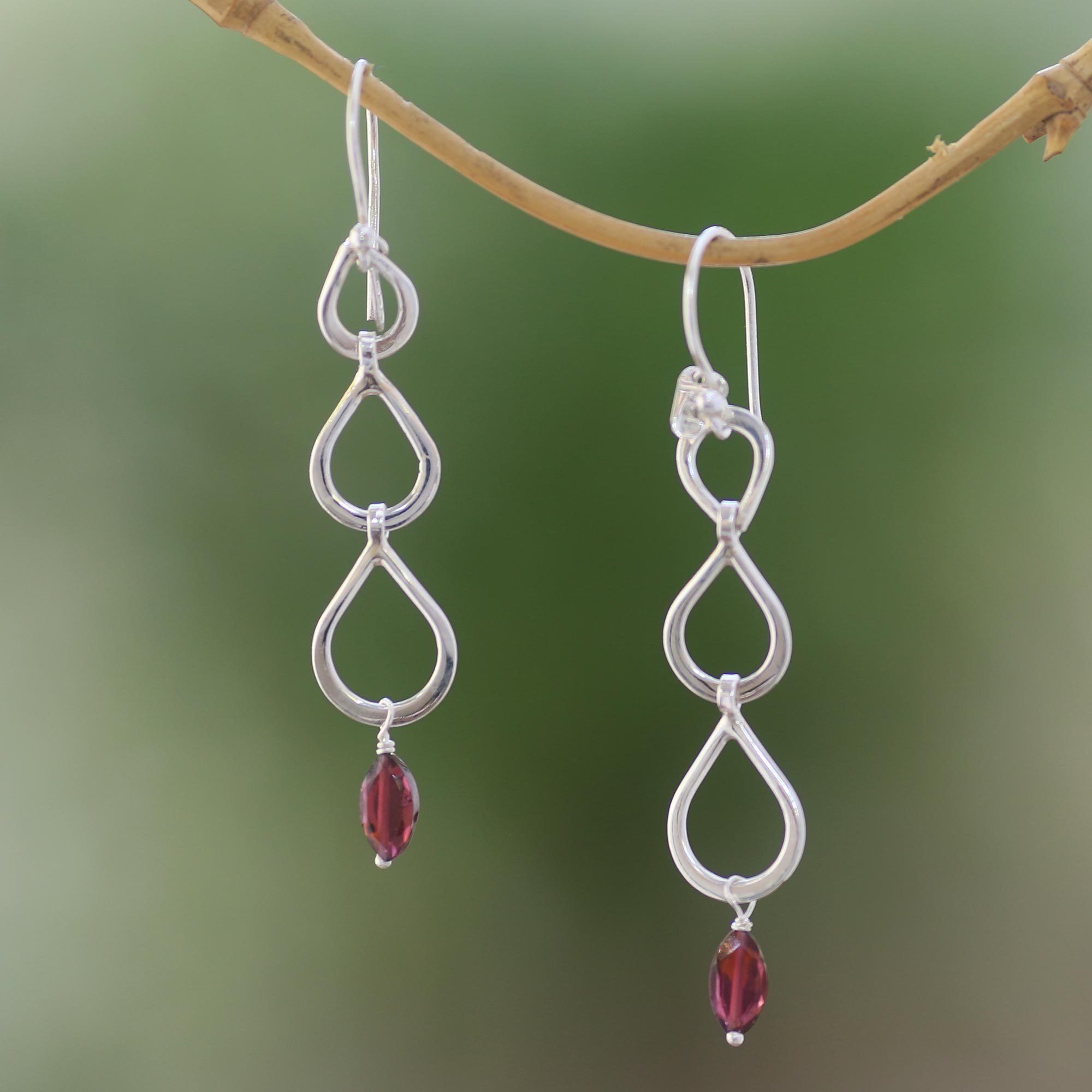 Sterling Silver Raindrop Faceted Red Garnet Dangle Earrings, 'Berkah Rain'